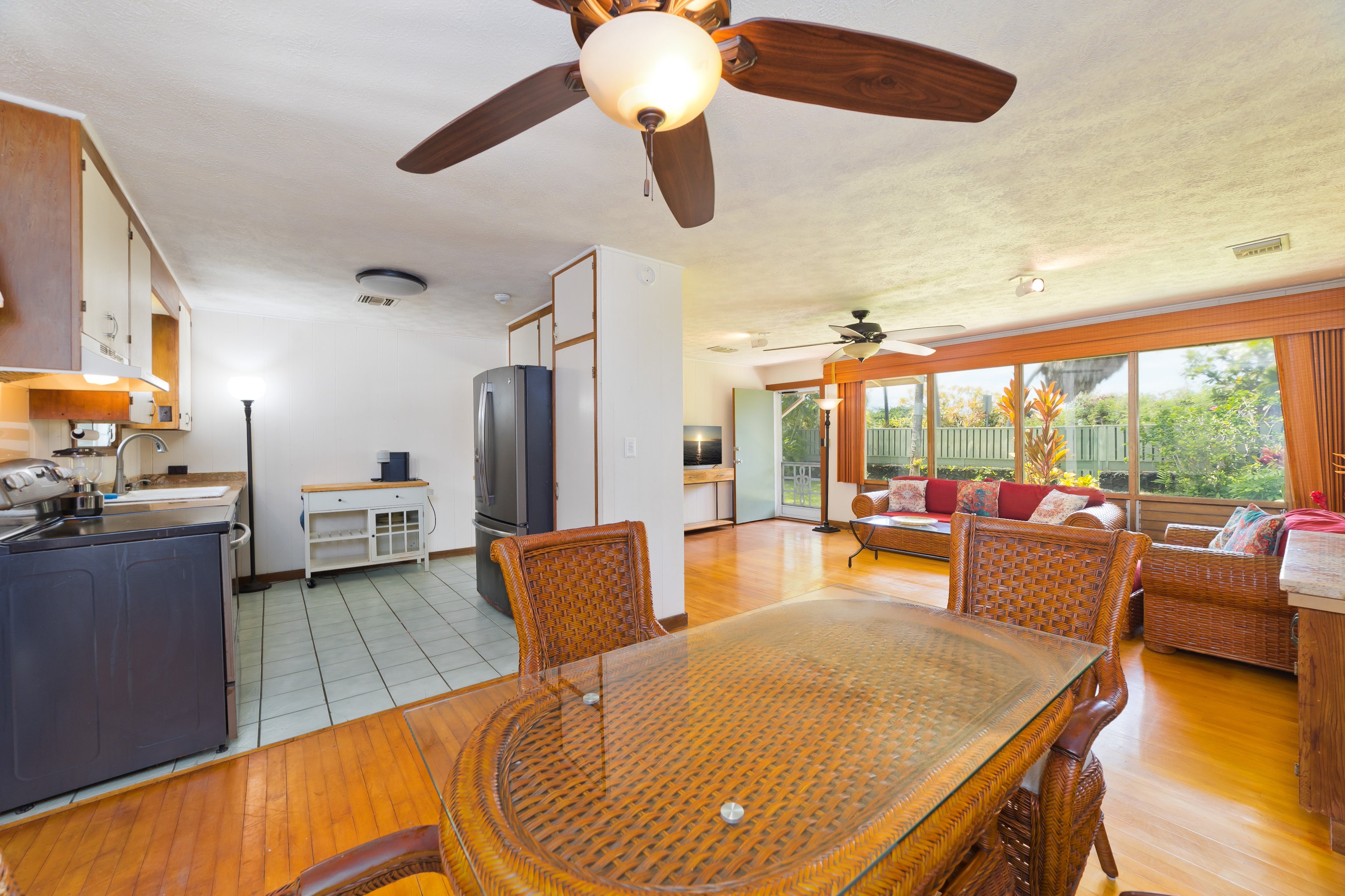Welcome to this classic, charming and rare 3 bedroom 1.5 bath redwood plantation style home and 2 bedroom 1 bath guest house located just a short walk from popular and picturesque Manini Beach and snorkeling renowned Kahauloa Bay in the historic and coveted environs of Kealakekua Bay. This enviable corner property with swaying coconut trees, shady and productive mango trees together with a generous sized and welcoming lawn area nestles behind an impressive rockwall topped with a sturdy wooden fence. Gated driveways on the southern and western sides provide vehicular access to both the main house and the guest house. Features of note concerning the buildings:-Main House:- * The main house has a living area of 1,056sqft with 3 bedrooms and 1.5 baths. * Attractive hardwood flooring throughout except for tiled kitchen and bathrooms. * Granite kitchen counters. * Central air-conditioning. * Built in book shelves in the living room. * Solar hot water system with 80 gallon reservoir. * 198sqft carport.Guest House:- * Actual living area is approximately 596sqft with 2 bedrooms and 1 bath. * Tiled flooring. * Overhead fans.Utility Building:- * 120sqft in area and previously used as an art studio. * Window mounted air conditioner.Landscape:- * Rock gardens fringe lawn area on the southern and western sides. * 7 station irrigation system. * Producing coconut, mango and orange trees. * Gazebo located on the lawn area on the western side. * Plenty of room for raised garden beds.This special property is conveniently located approximately 6 road miles from Captain Cook, 17 road miles from Kailua-Kona and 24 road miles from the Ellison Onizuka Kona International Airport.Video of property: https://player.vimeo.com/video/1100148273