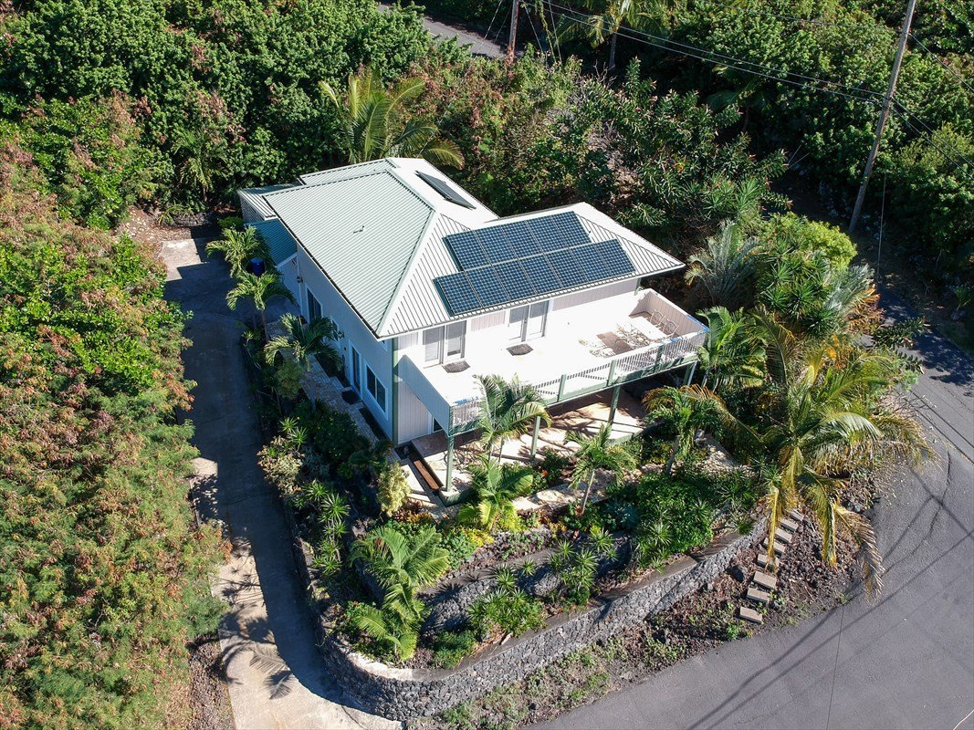 COUNTY APPROVED TURNKEY FURNISHED VACATION RENTALLocated at an elevation of approximately 600' in picturesque Kona Paradise, this impressive property enjoys expansive ocean and coastline views which extend north to Kealakekua Bay and beyond to the evening lights of Kailua. Gracing this 7,538 sq ft lot is a majestic 3 bedroom 2.5 bath two story home, which displays pride of ownership, superior workmanship and attention to detail. Complementing the house is a meticulously landscaped and terraced ocean facing frontage complete with imposing rockwalls.Notable features of the house include:- * A recently County of Hawaii approved license for vacation renting. * An owned, net metered and roof mounted photovoltaic system. * Solar hot water system. * High ceilings throughout. * Oak flooring in all rooms except the bathrooms which are tiled. * The kitchen has granite counters, oak cabinetry, custom pantry and a great ocean views. * A spacious master suite complete with a reading area and direct access to the open lanai on the upper level. * Extensive use of french doors. * Bathrooms have marble vanities. * Both the upper and lower levels are served by ocean facing lanais that extend the full length of the house. * Laundry room. * A one car garage. * A 10,000 gallon catchment tank with shed cover and UV water treatment system.For local recreation, swimming, snorkeling, fishing and kayaking can be enjoyed at Pebble Beach within a two minute drive at the lower end of the subdivision. Please note! The physical address of the property is the corner of Kaohe and Fern Roads. County and title records show the address as being 87-3190 Lemiwai Road