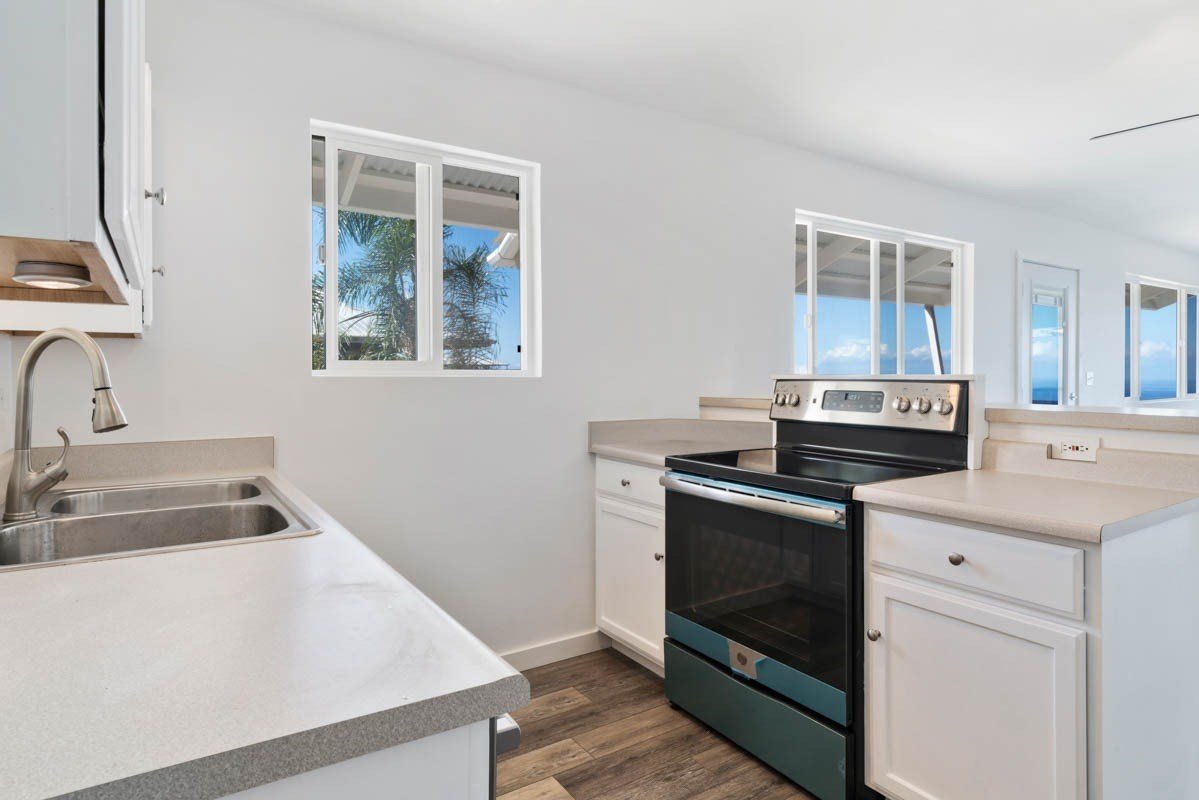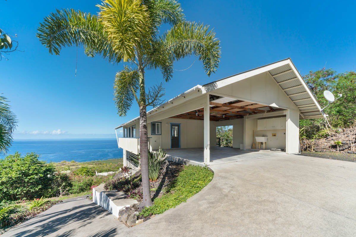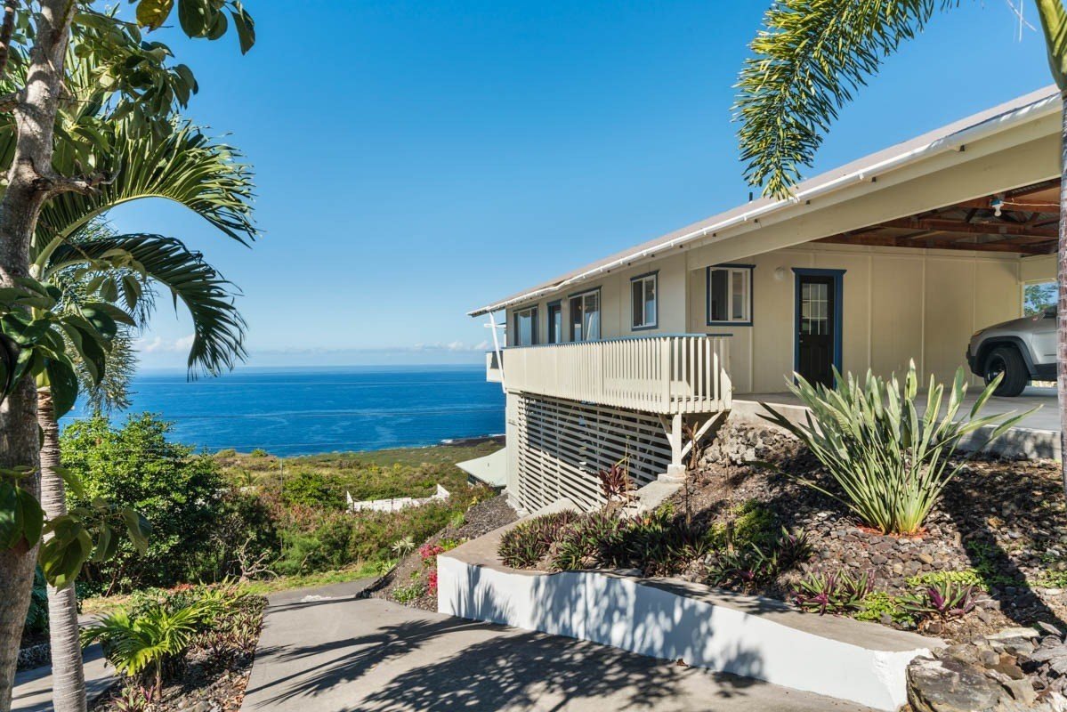 Dazzling Pacific and sunset views from this just-remodeled 2 bed, 1 bath home in relaxed Kona Paradise, South Kona, Hawaii.