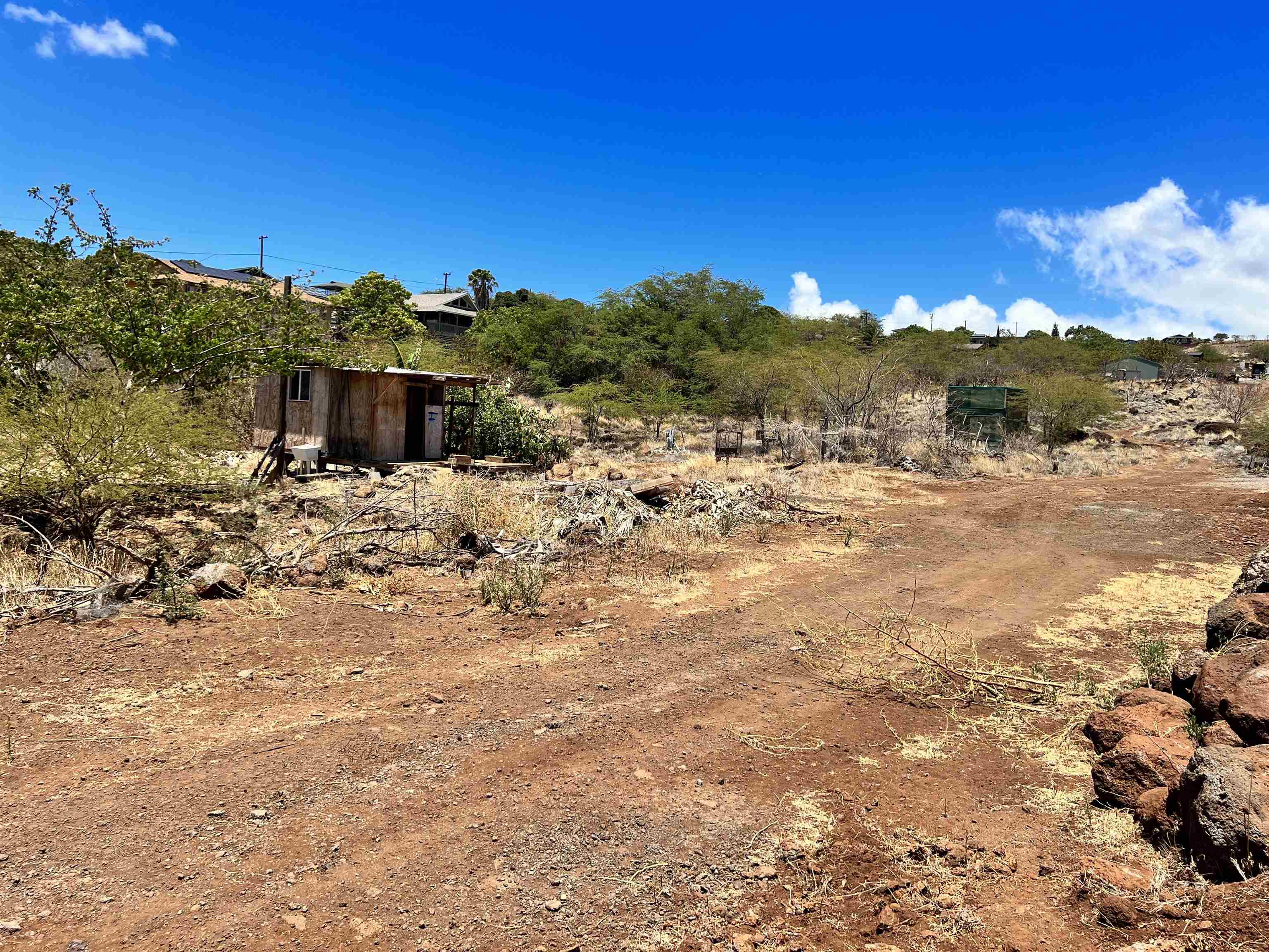 Cleared vacant lot, with INSTALLED COUNTY WATER METER. Very private and not visible from the main hwy. A very good area just a couple miles east of Kaunakakai town. Some tropical fruit trees with nice ocean and island views. A non permitted structure is on the property that can be used as storage. Seller is open to owner financing with acceptable terms.