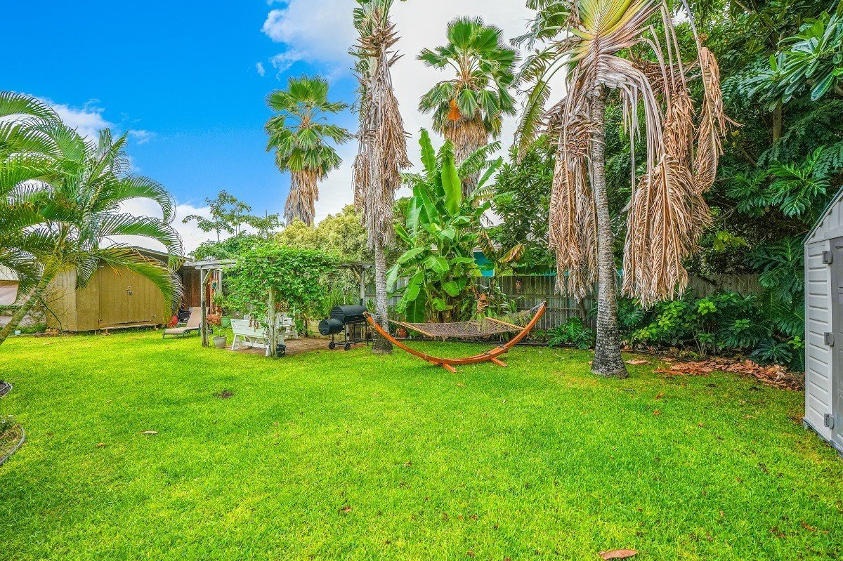The backyard is fully fenced in making it a safe place for pets. There are several fruit trees that can be found on the property including banana, lemon, lime, avocado, tangelos and more. There are two sheds adding plenty of additional storage as well as a pergola to relax in and enjoy the beautiful sunsets that the West side of Kauai is famous for.