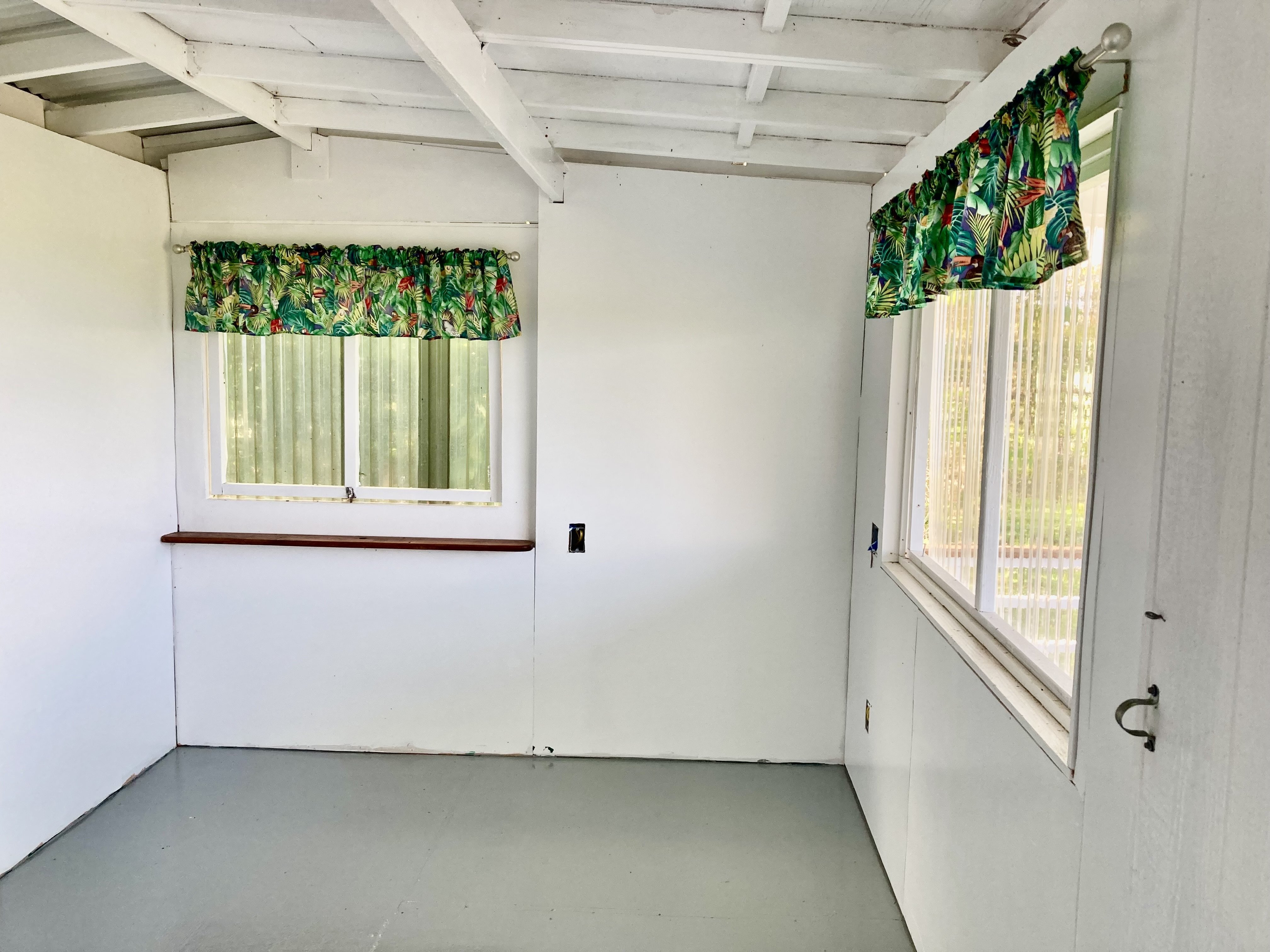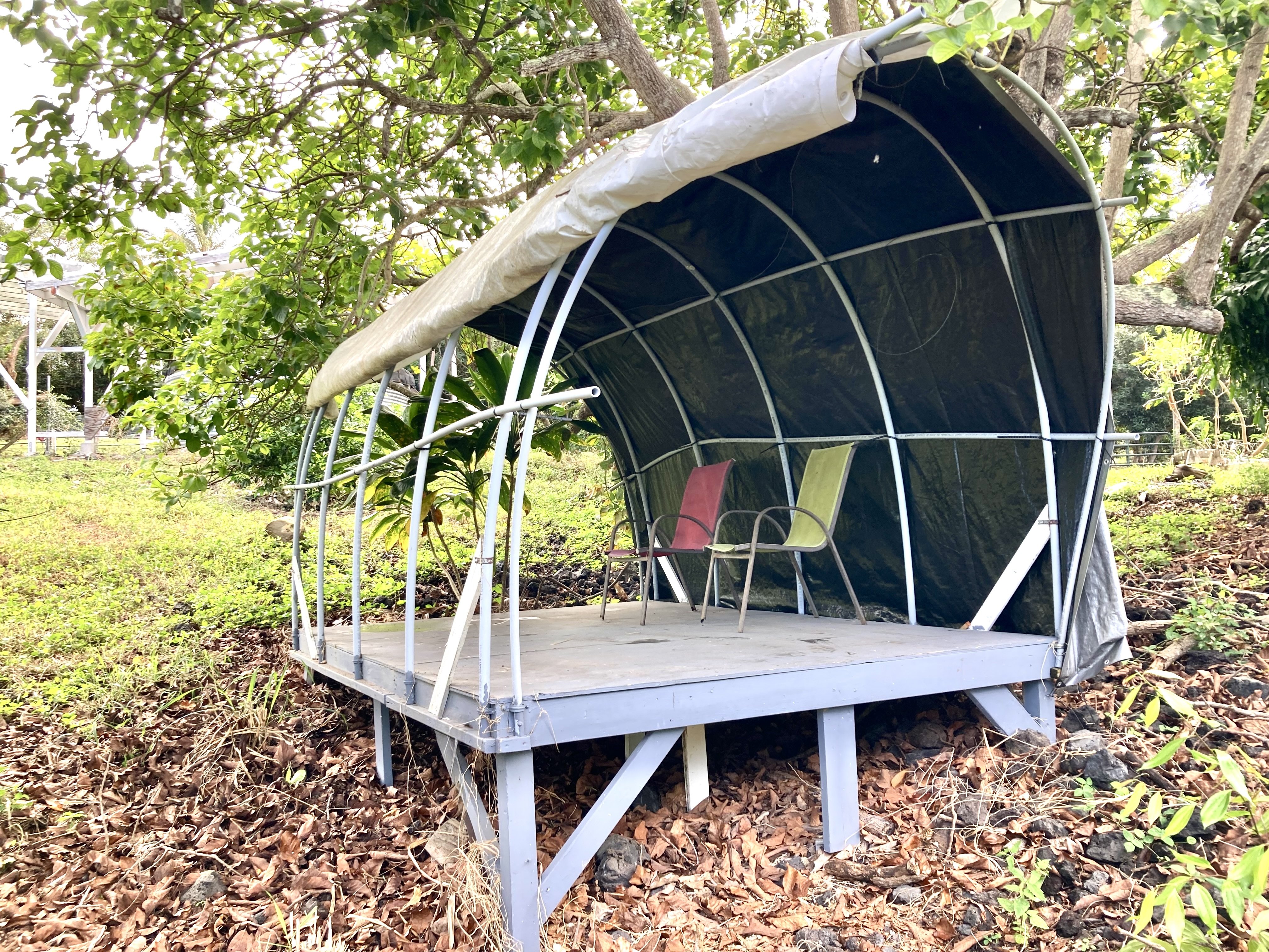 OHANA: 2020-2022 * Solar system w/three panels, four golf cart batteries. New inverter in 2025. New batteries in 2023 * Covered 8X11 lanai w/ocean & sunset views * Includes attached 19-inch TV w/over the air TV antenna and attached Bluetooth stereo, Sitka Spruce bench, bed & bed frame
