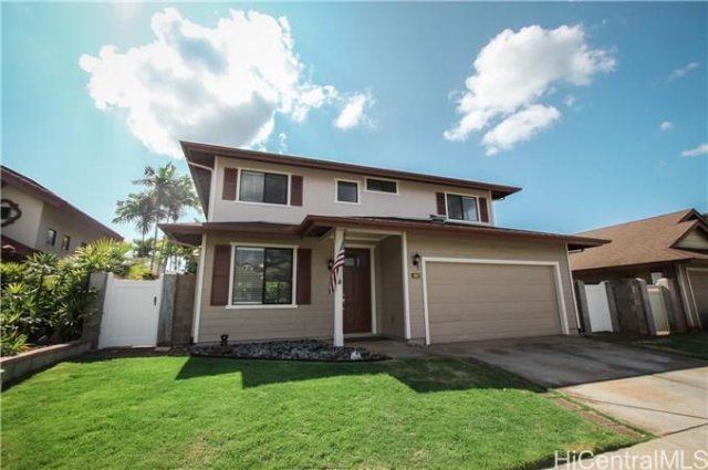 Spacious 5 Bedroom 3 Bath home in Kapolei Knolls. Full Bedroom and Bath on ground floor. You will notice the attention to detail in the recent upgrades which include 7 Split AC units, New Ceiling Fans, New Koa Laminate flooring, New Interior/Exterior painting, New Sod in Backyard, New Carpet,and New Vinyl window blinds. Great location in the growing city of Kapolei, close to schools, parks, golfing, Ka Makana Ali'i Shopping center, UH West Oahu, and beaches. Other features include Custom Rain Gutters, Solar Attic Fans, and 120 Thermal Solar Hot water recently serviced. HECO permit available for the next 18 months to install PV system. Let this be your piece of paradise. View 3D interactive video tour in virtual tour section.