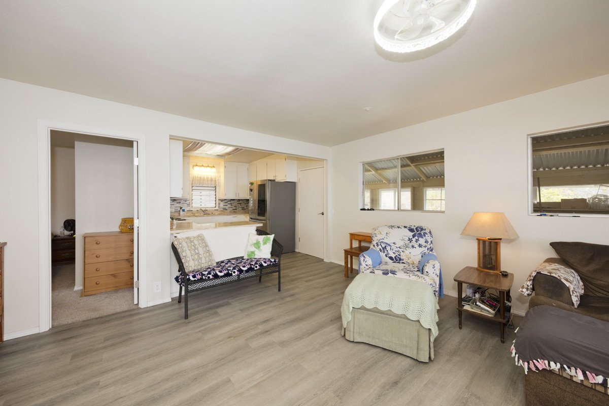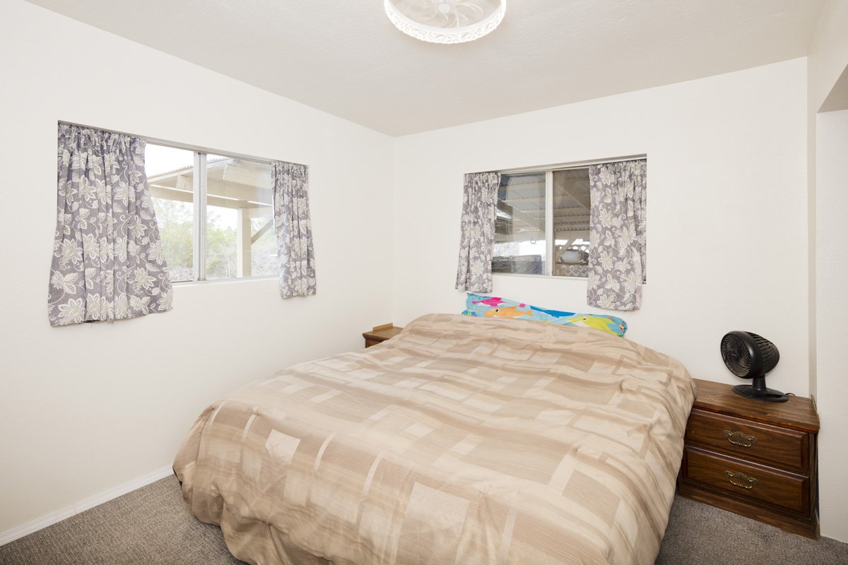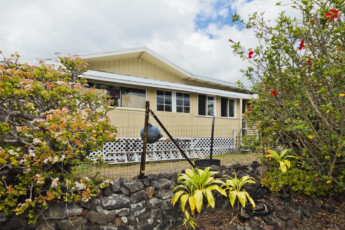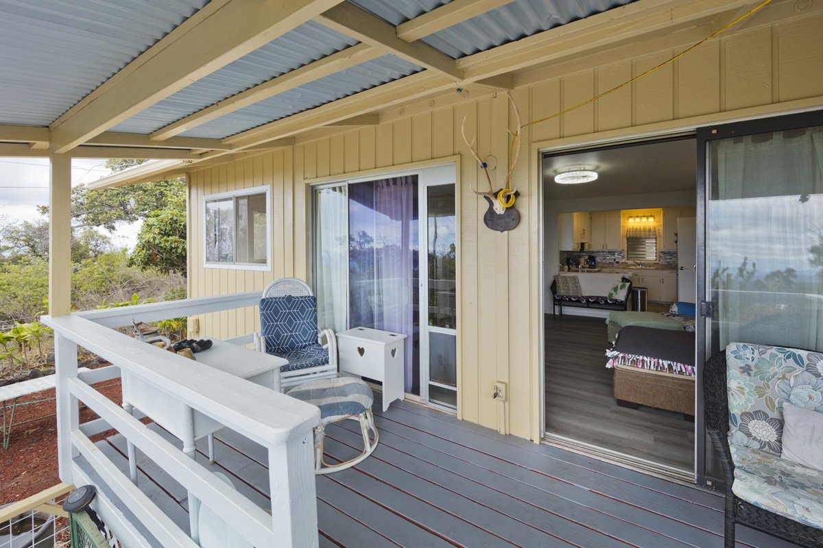 This permitted/financeable 2 bedroom 1 bathroom home is conveniently located a few blocks up from Hwy in a very nice part of the subdivision. The home boast some of the best views of South point, the ocean and coastline. The property is situated on 1 acre that has well established landscaping with many mature fruit trees, like mango, peach and many others. The home has many renovations. For example, sections of new roof, drywall, paint, vinyl flooring and carpet to name a few. The home has an outdoor patio area perfect for larger family gatherings; great for Barbecue or additional play area for kids. Also there is an enclosed deck that would be perfect for an office or a craft room. The property has a gate for added security, several areas fenced in for pets or livestock. There is a large grass lawn and many beautiful rock walls. Also you will find a chicken coop for hens to lay eggs, and a smoker hut for the hunters. The whole acre has been developed and is ready for whatever the mind can imagine. There is a large storage shed in the back to keep tools, lawn mower and extra stuff. The home comes furnished and ready to move right in.
