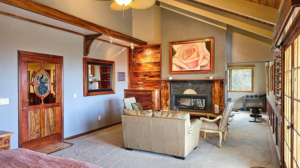 Major price drop is due to Sellers completing their "forever" home RIGHT NEXT DOOR!Discover Pharaoh's Heart: A Luxurious Ocean View Retreat in HawaiiNestled on 1.43 acres bordering Hawaii Volcanoes National Park, this exclusive property showcases lavish natural woods, including Koa, Monkeypod, Silver Oak, and Reclaimed Heart Redwood. With panoramic ocean views and meticulously landscaped grounds, Pharaoh's Heart offers an unparalleled living experience.The permitted 2,460 SF main house boasts 2 bedrooms, 2 bathrooms, and (2) 300 SF garages. Powered by a 7.28 kilowatt grid-tied solar system, this home features a designer kitchen with handcrafted monkey pod cabinets, quartzite countertops, and opulent travertine. The living room is trimmed in silver oak with built-ins, while the great room showcases high ceilings and reclaimed clear heart Redwood trim.Indulge in the master bedroom's custom-built Koa headboard with rock & crystals, a walk-in closet, and a lavish master bath complete with a 2-person infrared sauna, jetted tub, and large walk-in shower. A double-sided gas fireplace trimmed with slate and travertine adds warmth and elegance.The property also includes a unique custom Pyramid bungalow, aligned with true north and featuring a massive quartz crystal at the apex. This 1 Bedroom, 1/2 Bath space showcases opulent Travertine, cedar wainscoting, and eucalyptus.A 900 sq. ft. workshop with natural lighting, a greenhouse, equipment storage building, and chicken coop complete this exceptional property. Mature pine, ironwood, and Koa trees provide privacy, while a rolling gated entry and concrete driveway ensure exclusivity.Experience luxury and paradise at Pharaoh's Heart, where unparalleled attention to detail, premium construction, and exquisite design harmonize with the breathtaking Hawaiian landscape.Video Link: https://drive.google.com/file/d/1h271L49LmcFv02k90fMI06TUKl67th8p/view?usp=drive_link