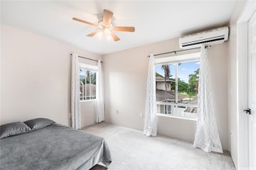 Welcome home to this stunning 3 bedrooms 2.5 bathrooms single family home. Surrounded by views of Hawaii ocean waters, find yourself relaxing on your oversized balcony enjoying cookouts in your private fenced in yard. Highly sought after Makakilo is desired for its views and the wonderful cool breezes from the trade winds. Seascape at Makakilo is a private gated community. This home features upgraded flooring, plantation shutters, kitchen appliances, 16 PV panels, open floor plan, loft upstairs. Exterior has been freshly painted. Large master bedroom with en-suite, custom upgraded closet organizers. Pride of ownership with new grass, faucets, light fixtures, wifi garage feature, and up to date pest control services. Close to the growing Kapolei city, shopping centers, H1, and beaches.