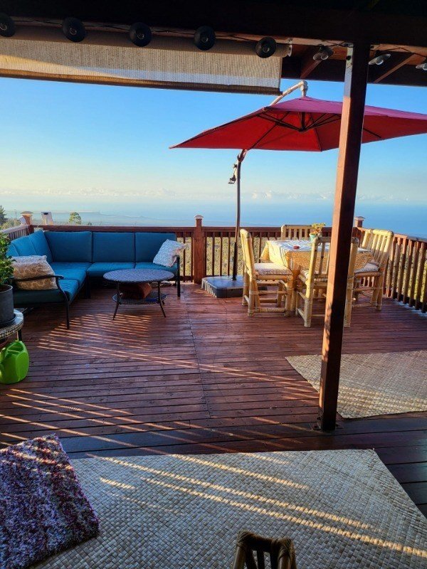 HUGE PRICE REDUCTION GREAT PRICE!! A private resort style living on 1 Acre with a 1 bedroom, 1 bath octagon style home with spectacular ocean views and amazing sunsets. The open living floor plan with a 8 to 12 foot ceiling including a custom cupola with windows to keep the home cool. Glass double doors looking out from the living room and bedroom straight to the blue ocean. Great indoor, outdoor living onto the large open deck while enjoying the cool ocean breeze relaxing enjoying the great views.