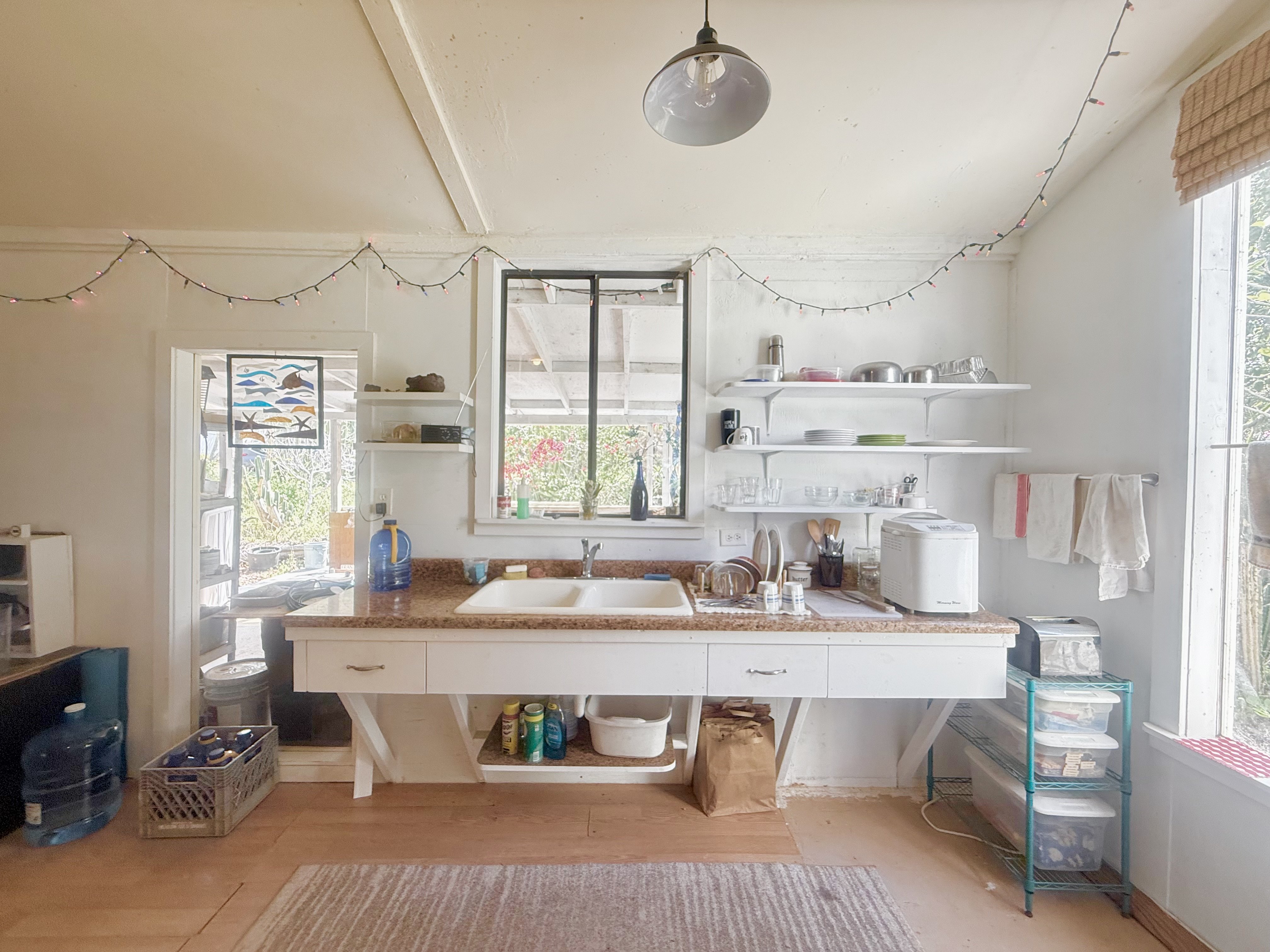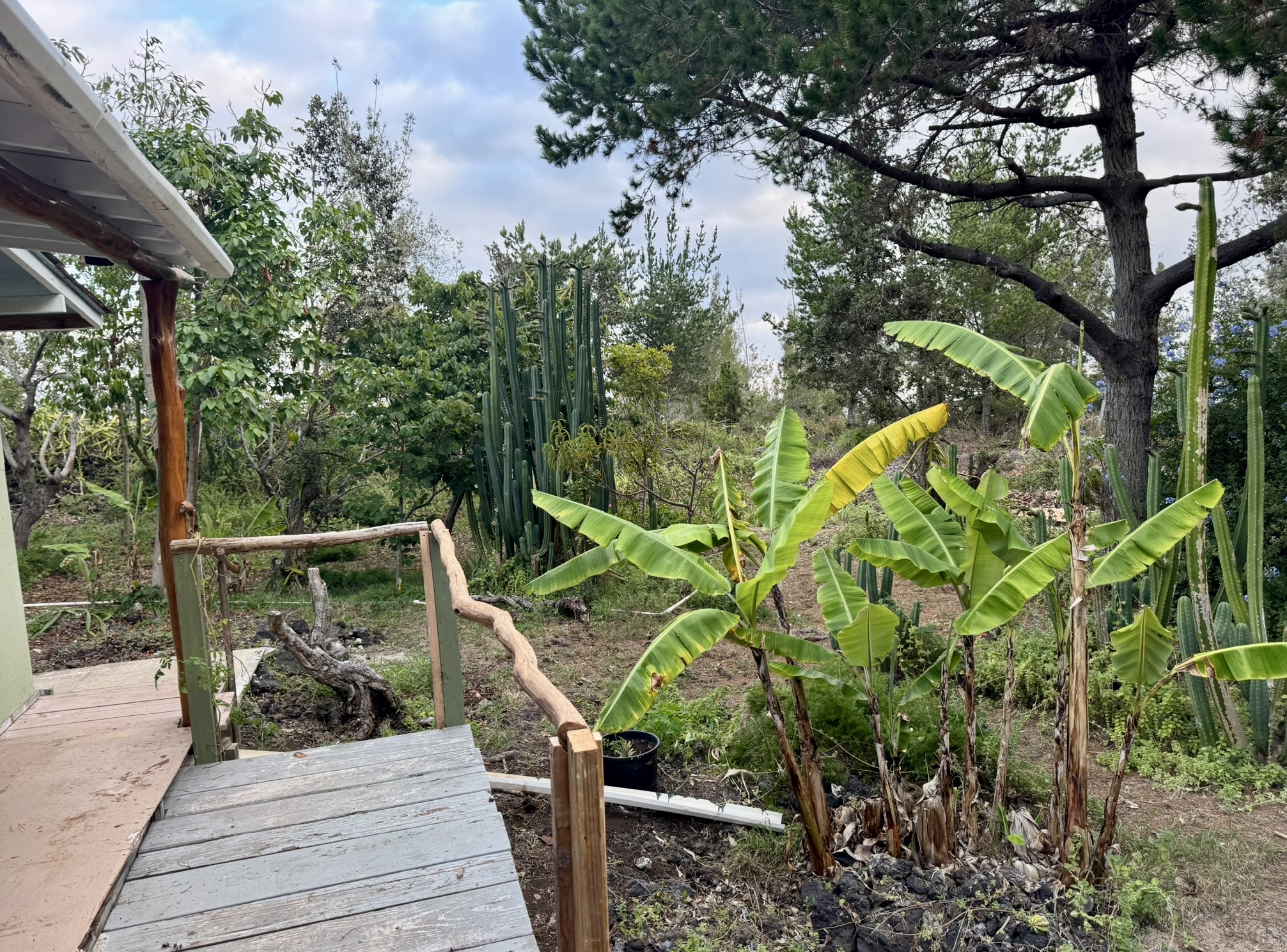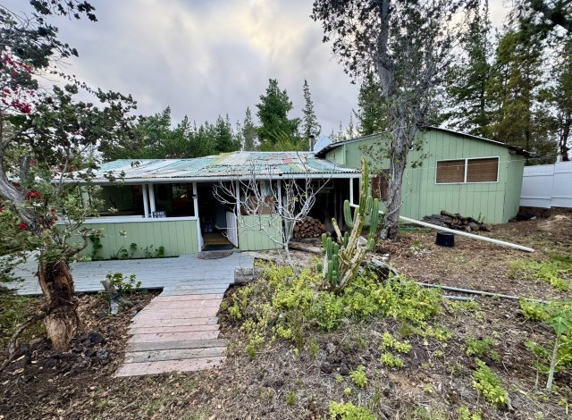Unique 1-Bedroom, 1-Bath Cabin on wide 1 Acre property. Cabin is aprox 900 sqft and offers a great opportunity to live simply and/or expand . Underground power runs from the meter at the top of the property to the unpermitted structure below. A newer water catchment tank is in place. The acre is lush and abundant with mature trees—fig and avocado—along with a grove of ficus, dragon fruit, pomegranate, macadamia, orange, pear, sapote, cherry, banana, and a variety of flowering plants. An affordable property full of potential to make your Hawaiian dream come true!