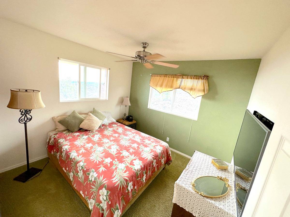 BIG PRICE REDUCTION. This unique custom built 4 bedrooms 2.5 bathrooms home was built with 2,013 sqft living area. You can wake up in bed from your ensuite to enjoy the sunrise & views of South Point cliffs without leaving your bed. Enjoy a delicious barbecue dinner on your back lanai with by a glorious Hawaiian sunset as your back drop. As you enter, youʻll notice a newly carpeted living room with an open beamed vaulted ceiling. Windows on every wall offering complete views from any room, but especially from the living area that looks out to South Point. Windows are enlarged plate glass with side controlled ventilation 4ʻ X 8ʻ for perfect living temperature.The kitchen's dining room is 16' X 16' and has natural slate flooring & French doors that open to an outdoor lanai. Counter tops are black granite tiles & all cabinets are oak & have self-closing drawers with a built in counter bar along with a walk in pantry and new range.En Suite Bedroom upstairs has Oak floors with French doors opening to a sun deck. Bathroom floor has porcelain tile, vanity & tub surround is marble. The guest bath has a slate tub enclosure & vanity top & floor is ceramic tile.The 3 other bedrooms are situated on their own wing for excellent privacy. Both En Suite Bedroom and Family room have ceiling fans with a wood leaf motif along with 4 other fans in the home for constant circulation. There is extra storage under the stair well & built-ins within the two car attached garage with walls that are 11'6" high. New catchment tank cover and new water pump. Front stairs, entry, & outside lanai freshly BI painted.House has been sheared twice, blocked at 4 ft. from the floor, exterior cement footings that have been enlarged. Extra hurricane strapping and bolting far exceeds the plans. Fiber optic internet and on demand hot water heather. Special financing available for an assumable VA loan for qualified buyer at a very low interest rate. A MUST SEE