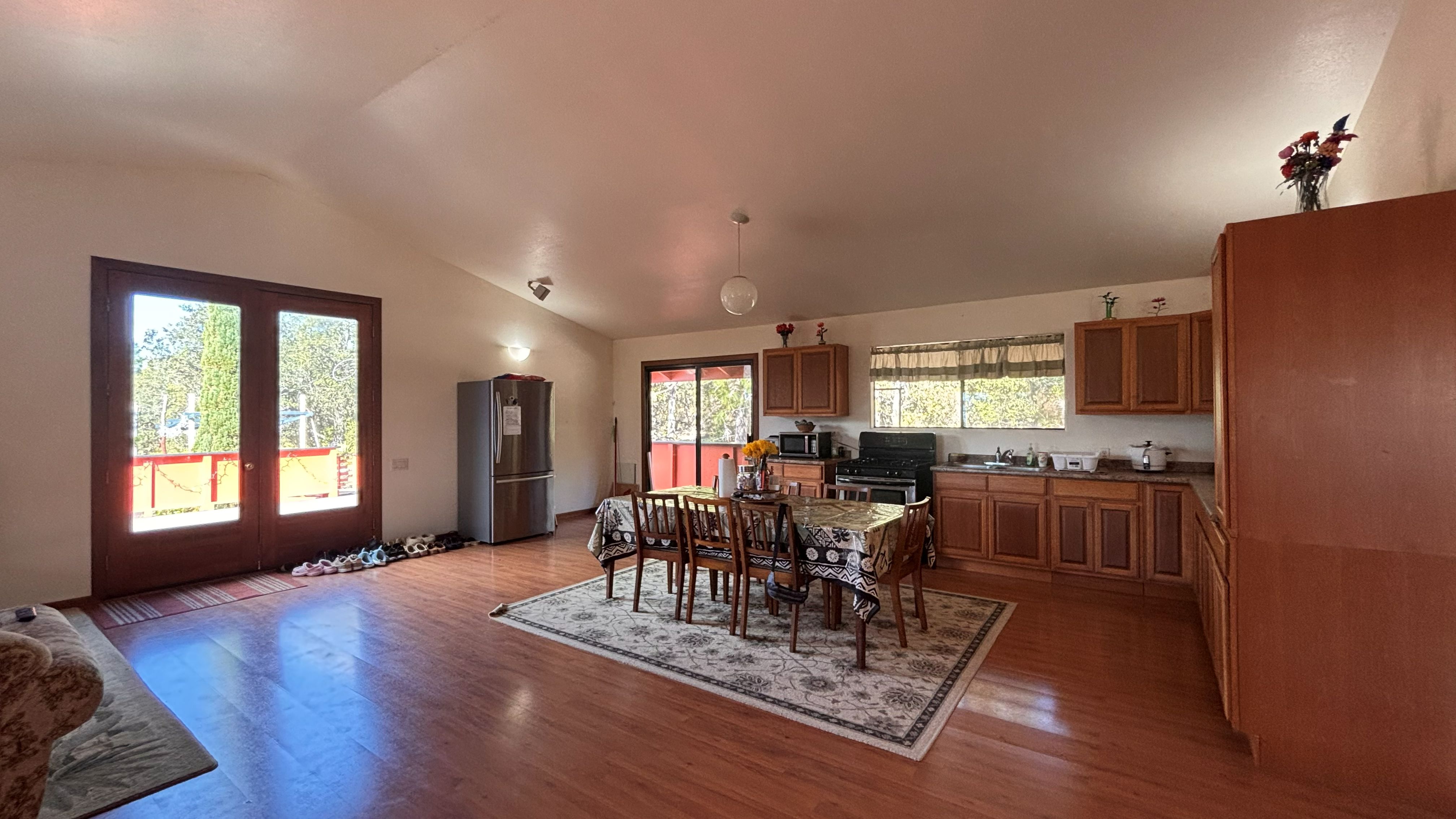 Beautifully landscaped and surrounded by native forest, this property features graded areas for future homesites, meandering pathways, established gardens, succulents, protea, and a wide variety of other stunning plantings. Nestled on three beautifully improved acres, it offers exceptional space, privacy, and multi-family living potential.This thoughtfully designed home features flexible living on two levels. Downstairs includes a comfortable 2 bedroom, 1.5 bath layout with a full kitchen and living room. Upstairs features 2 additional bedrooms, a full bathroom, and a spacious open concept kitchen, dining, and living area. Entire home is wheelchair friendly with an outside ramp to the upper level. Enjoy outdoor living from the large covered patio area downstairs, expansive wraparound lanai and large open deck. Carports on both ends of the home for parking and ample storage space.The sale includes three adjacent one-acre parcels, with the home positioned on the center lot and thoughtfully set back from the street. The two adjacent parcels provide exceptional privacy, future homesites and beautifully maintained plantings throughout. Additional features include a large 24,000-gallon catchment tank on a cement pad and under roof, a photovoltaic system with Tesla components, and previously graded areas throughout the property for future building. This inviting home is ready for a new family to make it their own and fully embrace the beauty of its surroundings.Three lots are included in this sale (TMK 3-9-2-159-52, 53, and 54).