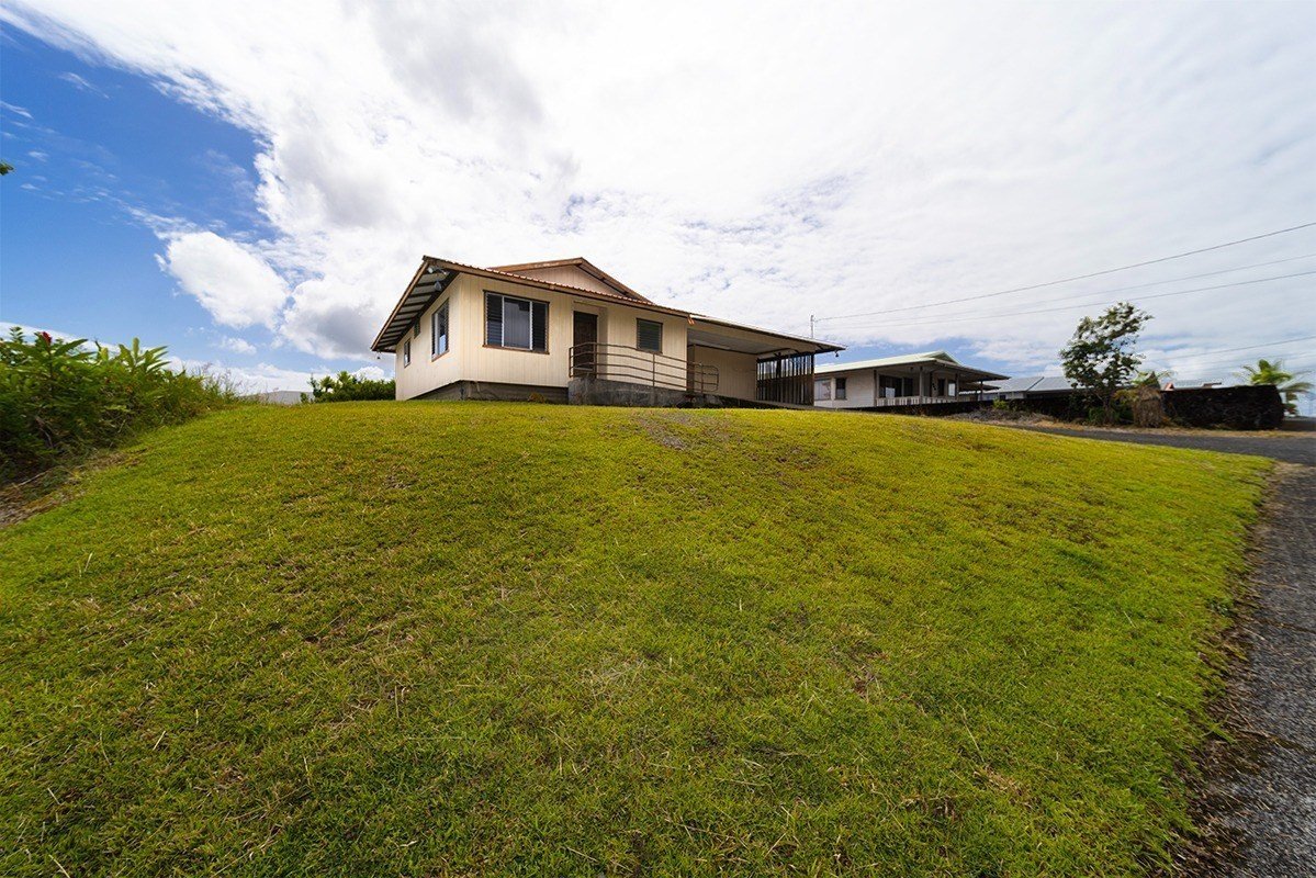 Location of this house is prime! Great neighborhood! quiet and private deadend/culdesac road. And house sits on a beautiful high lot! But . . . is a complete fixer. .. . roof, gutters, flooring, cabinets. etc. need replacing. Nice floor plan which flows from kitchen to dining to living room. Huge master bedroom w/full bath and 2 closets (one walk-in closet and one other), and built-in cabinets/vanity, and ample storage. Very distant ocean views on a clear day. Another bedroom was added on next to laundry room (w/permits) so carport is smaller than it originally was. One car can fit and the other will be half in the carport. Nice back yard with a variety of citrus fruit trees - Okinawan tangerine, tangelo, lemon, and a lilikoi vine. This house can be made beautiful again as it sits very high on the lot!