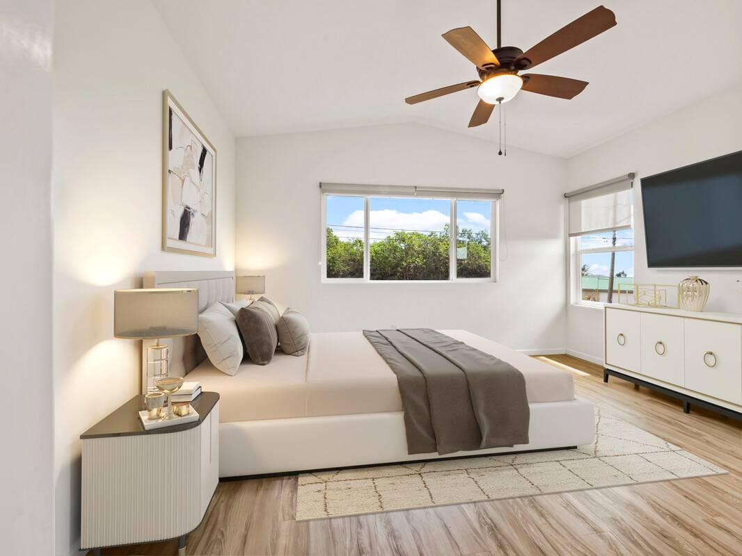 PRICED JUST LOWERED..... Lovely 3 Bedroom, 2 Bath Home in Discovery Harbour in walking distance to the Clubhouse and the Community Center. This is a newer home and all permits were completed in March 2022. One story, open floor plan, easy care floors, laundry room, 2 bathrooms, easy to navigate kitchen with good storage. Front covered lanai, perfect for rocking and watching the world go by. Front lanai 162 Sq. Feet and Back Lanai 282 sq. feet Semi-attached 2 Car Garage. 392 Sq Feet The sellers are the first owners and had 15 Solar panels and Tesla battery installed by Sunrun. (HELCO is backup power if needed) Currently on a transferrable lease. SunRun will fix any problems that may come up or will replace equipment if necessary. Solar system can be purchased at end of lease, or lease can be renewed. Monthly leasing fee is $167.00. Back Lanai is off the slider in the Living Room overlooking the back yard, which is totally fenced with grass, flowering trees and shrubs. There is a side gate to the backyard for vehicle access. Owners had Hawaiian Telecom Fiberoptic cable for fast and reliable internet service. Discovery Harbour has an 18-hole golf course, which was designed by Robert Trent Jones. Social membership is an inexpensive $100/yr and includes access to the Clubhouse (bar, tables & chairs, Friday and Saturday excellent dinners with live entertainment), special events, pickleball, ability to rent golf carts and play golf at a decreased cost per day. Also, a small gift shop. There is a Fire Station in Discovery Harbor not far from the house. Current HOA fees are a low $150/yr. Subject to change Don't miss this opportunity to reside in a stunning golf course home and enjoy the tranquil setting surrounded by lush landscaping and an array of vibrant fruit trees and tropical plants. Embrace the beauty and serenity of Discovery Harbor Click on the video at the top right corner of listing