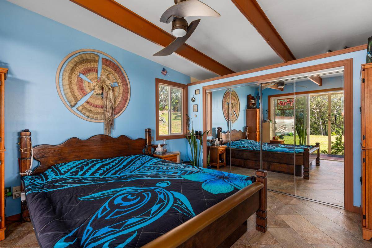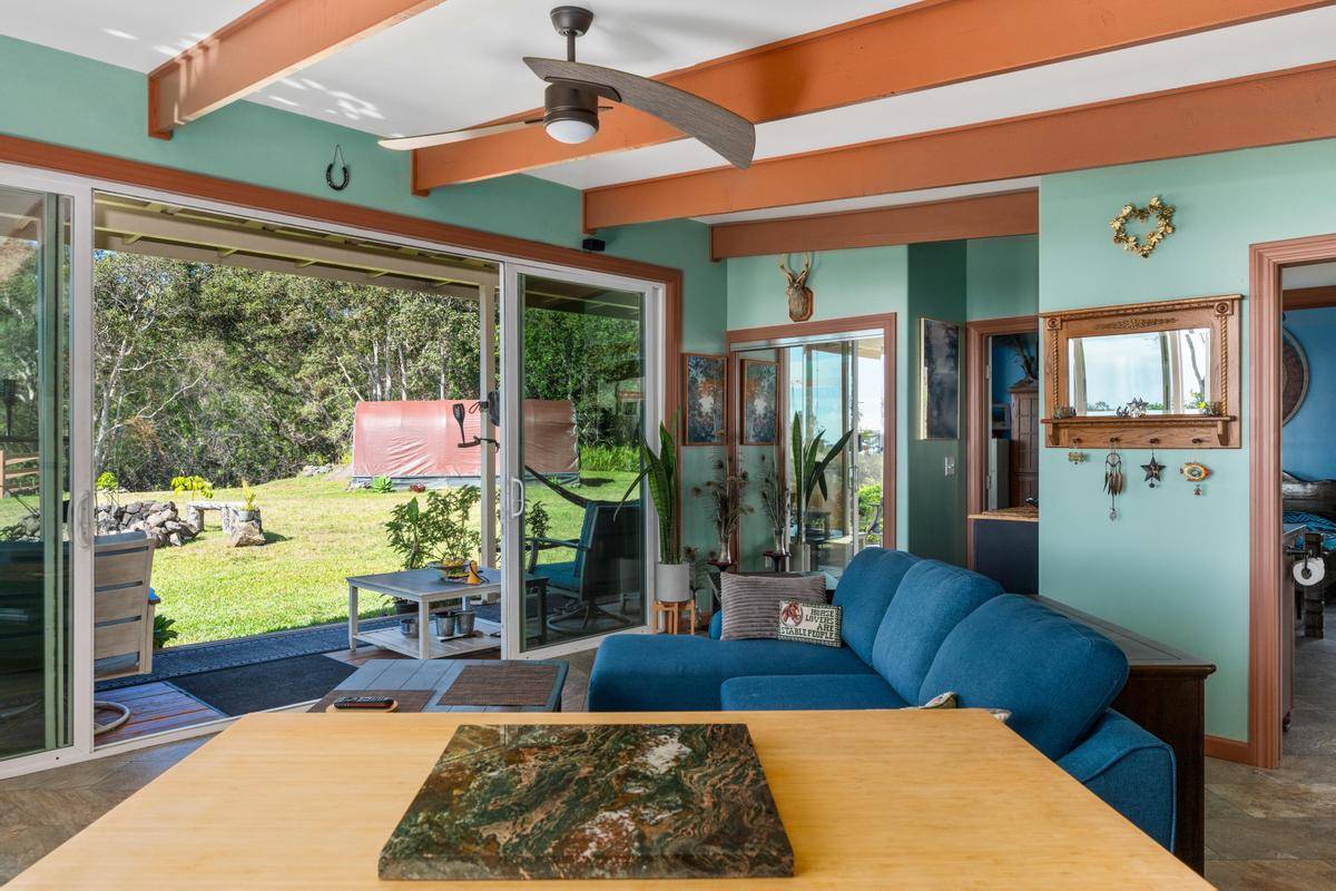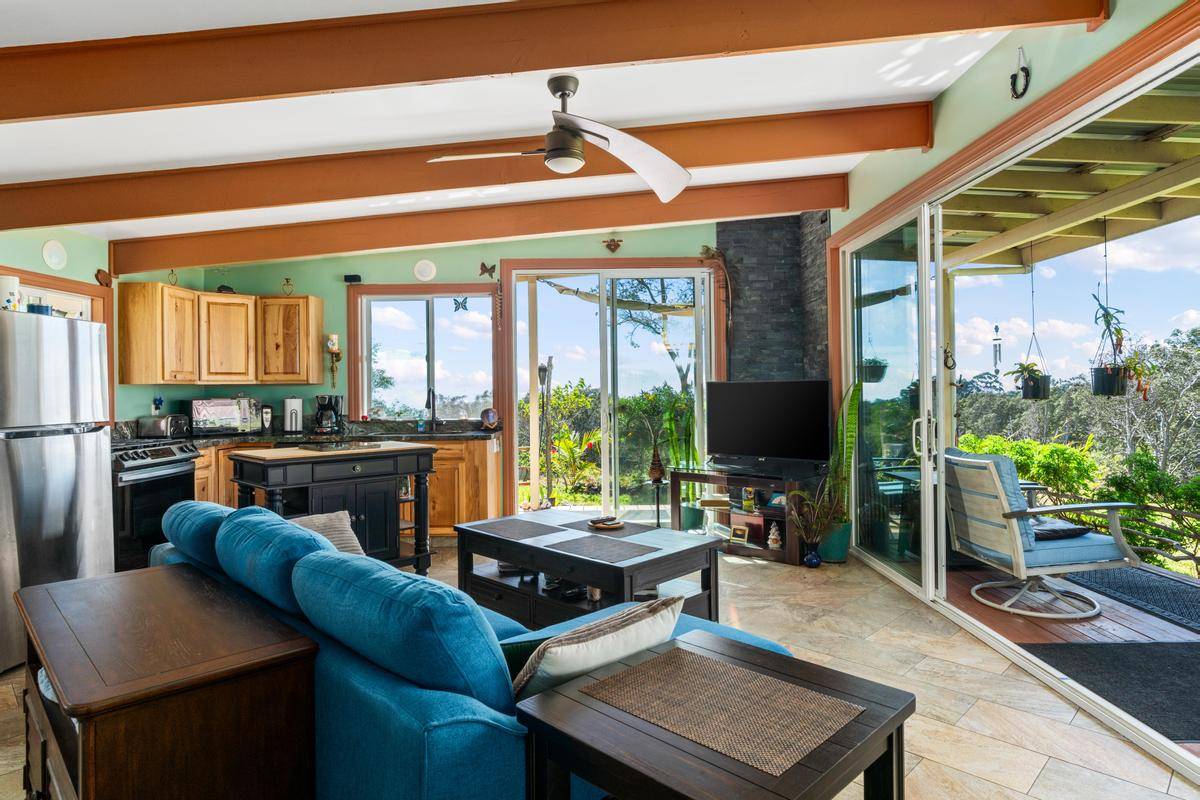 SELLER FINANCING AVAILABLE! Beautiful 14+ acre property w/ custom built 1 bdrm 1 bath home located in Waiohinu near the southernmost point of the United States! This property is truly amazing and has so much to offer. Ocean views, gated entry, barn with storage, paddock, carport, privacy, off grid with a top of the line solar/battery system, fruiting trees, ideal weather year round, and so much more! The home is custom built, open floor plan with granite countertops in the kitchen, pantry, 2 fridge and freezers, gas range with 5 burners, washer/dryer and lots of cabinet space. The living room opens to the lanai with oversized glass sliding doors for an indoor/outdoor living space. The bathroom also has granite countertops, copper sink, waterless composting toilet, and a custom tiled shower with adjoining covered outdoor shower. Home is spacious yet cozy with lots of storage inside and out. Other notable features such as a 10,000 gal catchment tank with dual Stage filtration and UV treated potable drinking water, on demand hot water system, lots of windows for a light and bright space, is self sufficient and extreme pride of ownership is apparent throughout. The barn and shed area are wonderful and has an additional gated and fenced paddock area, a chicken house and has laying hens that will stay with the property. This property and its home offer a genuine treasure, boasting tranquil serenity, star-filled nights, perfect for stargazing, and a secluded rock fire pit for enjoying private moments. During the daytime, enjoy stunning ocean & horizon views, along with views of the Waiohinu hills from an elevation of approximately 2000 feet. Home comes furnished and move in ready and with an acceptable offer the Skid steer loader and John Deere 60”/0 turn mower are included. The home is unpermitted and must be a cash sale.