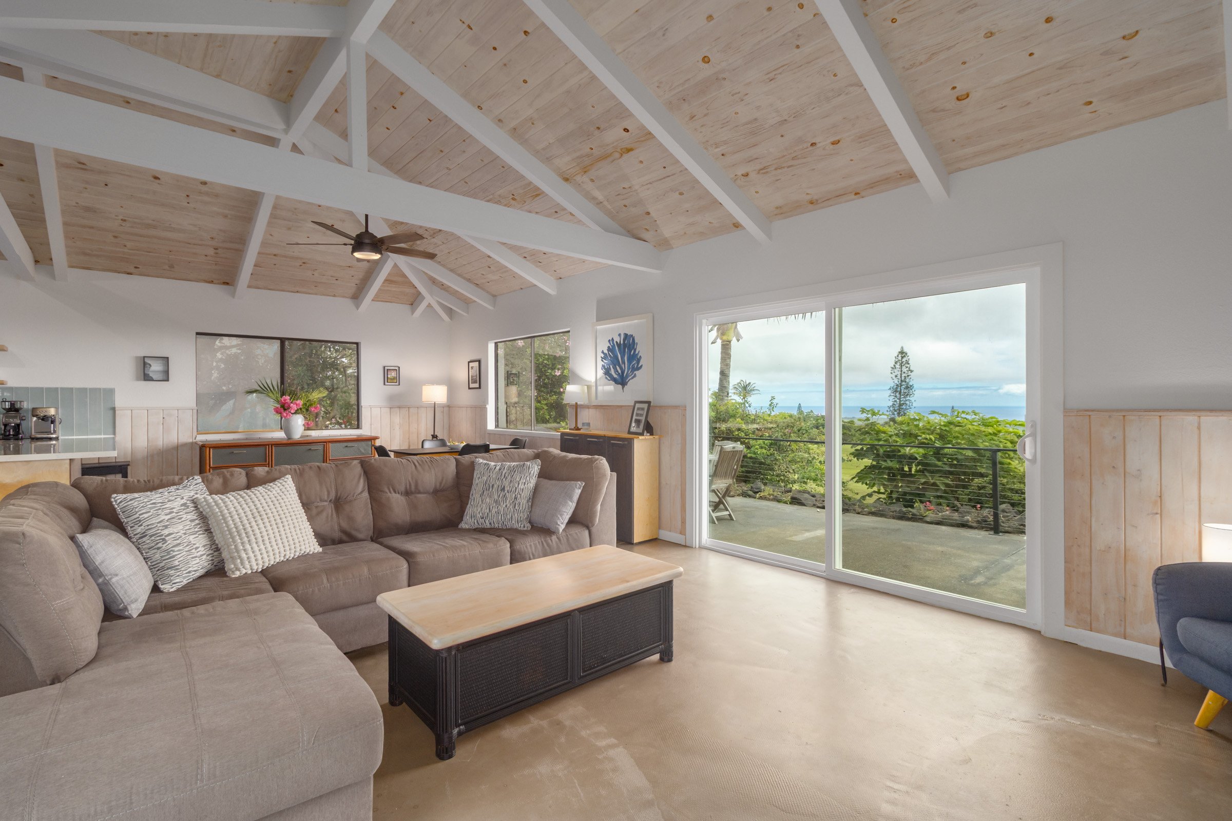 Discover the perfect blend of modern upgrades and island living in this fully remodeled 2 bed, 2.5 bath home in the Discovery Harbor community of Naalehu, HI! Located along the 16th fairway of the Club at Discovery Harbor and offering sweeping Ocean views, this furnished, move-in-ready home delivers comfort and style.Step inside to an inviting, open layout featuring vaulted ceilings, polished concrete floors, new kitchen cabinets, and quartz countertops. The kitchen is equipped with newer appliances and designed for ease of use, ideal for everyday living or entertaining.Enjoy morning sunrises, cool ocean breezes, and panoramic views from the spacious lanai overlooking the fairway. Each bathroom has been tastefully appointed with modern vanities, refreshed tiled showers, a soaking tub, plus new lighting and fixtures. A newer roof and fresh exterior paint add long-term value and peace of mind.Highlights Include:-2 Bedrooms, 2.5 Bathrooms-Fully Remodeled Interior-Polished Concrete Flooring-Belmont Soft-close Cabinets-Quartz Countertops-Ring Home Security System-Updated Bathroom Vanities & Showers-Samsung Bespoke Refrigerator-Updated Roof & Fresh Exterior Paint-Fruit Trees-2-car GarageWhether you’re looking for a full-time residence, a second home, or an investment property, this home offers rare quality at an incredible South Hawaii location.Don’t miss this opportunity to own a beautifully upgraded home in one of Big Island's most peaceful and picturesque communities!