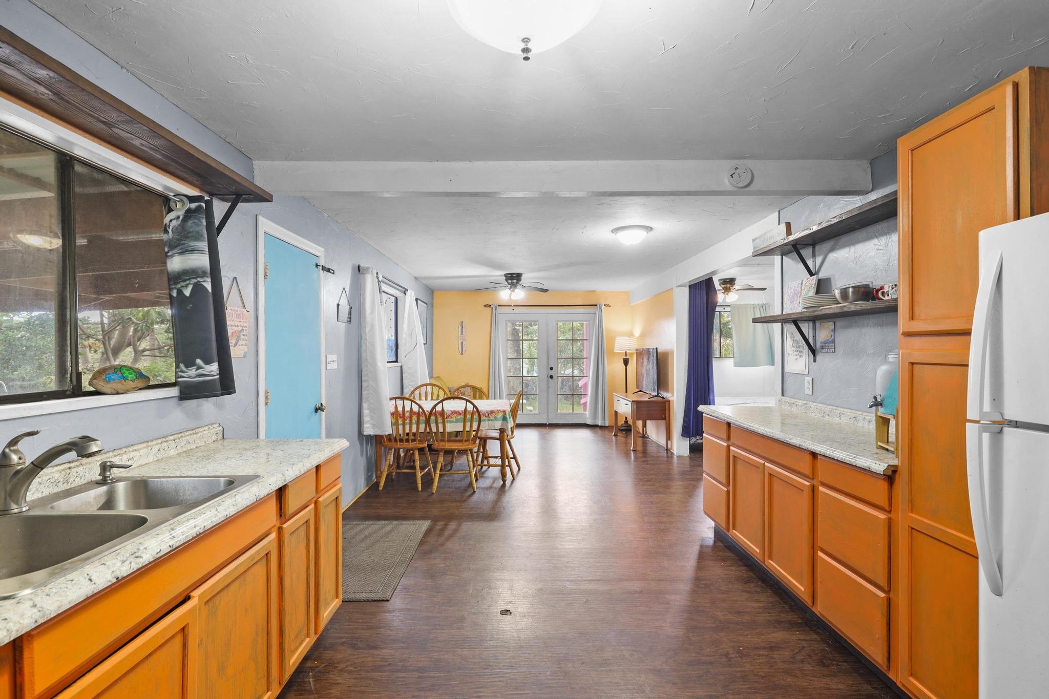 Experience the perfect blend of comfort, sustainability and natural beauty in this wonderful Naalehu home. Built in 1972 this home combines vintage charm with modern conveniences. Boasting a generous square footage, this residence captures the essence of colorful living with its bright green exterior and each room painted in a distinct, lively color. Abundant natural light floods the space, highlighting the homes dynamic atmosphere.This property is not only a visual delight, but also a practical investment. The lower level is ideally configured for use as a rental unit, providing a potential income stream or extra space for visiting guests. Newly installed photovoltaic panels offer energy efficiency and sustainability, reducing your carbon footprint while saving on electricity bills.Other Property Highlights: -Lava zone 6 -County utilities -New Leased PV (Sunrun; 25 Panels, 1 Inverter & 2 Tesla batteries) -Currently under Bowman Fumigation Warranty (Effective through Aug. 2025) -Many fruit bearing trees (Dragonfruit, mango, ulu, citrus, bananas, pineapples etc.) -New Ring Security System Installed -Newly replaced items: roof, gate, fencing, appliances, ceiling fans etc.