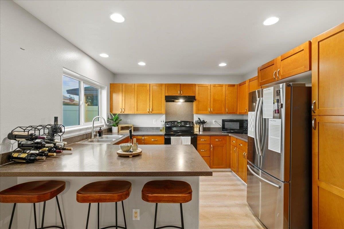 Imagine the soft morning light peeking into your home as the sun rises over Haleakala. Set in the highly sought-after Traditions at Maui Lani, this 3-bedroom, 2.5-bath single-family home blends everyday comfort with a beautifully central location. Enjoy sleek luxury vinyl plank flooring throughout, cooled by four split A/C units for year-round ease. The open floor plan offers a relaxed flow, while upstairs, all three bedrooms provide space to unwind. A prepaid PV solar lease with 16 panels helps keep your energy bills low, and the 2-car garage adds storage and convenience. Step outside and you’re minutes from the Dunes Golf Course, Central Maui Sports Complex, and just a 10-minute drive to Costco, Target, the airport, and more. Wake up to sunlight, live close to it all—this is Maui living.
