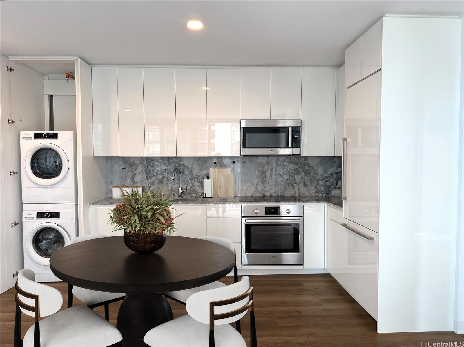 Discover exceptional value at Aalii with this best-priced unit, perfectly positioned on the cool side of the building and showcasing beautiful ocean and city views. Enjoy the ultimate urban-island lifestyle just moments from Whole Foods Market, Consolidated Theater, Ala Moana Shopping Center, Ala Moana Beach, and the popular farmers market. Aalii offers an impressive resort style amenity deck designed for relaxation and recreation, featuring a spa, pool deck, BBQ areas, yoga rooms, private pavilion, multiple cabanas, a fully equipped fitness center, children's pool and playground along with inviting indoor and outdoor gathering spaces. Whether you're looking for a primary residence, second home, or investment, this residence combines unbeatable price, prime location, and world-class amenities in the Heart of Honolulu! Open House Sunday, January 11, 2025, 1-4pm!