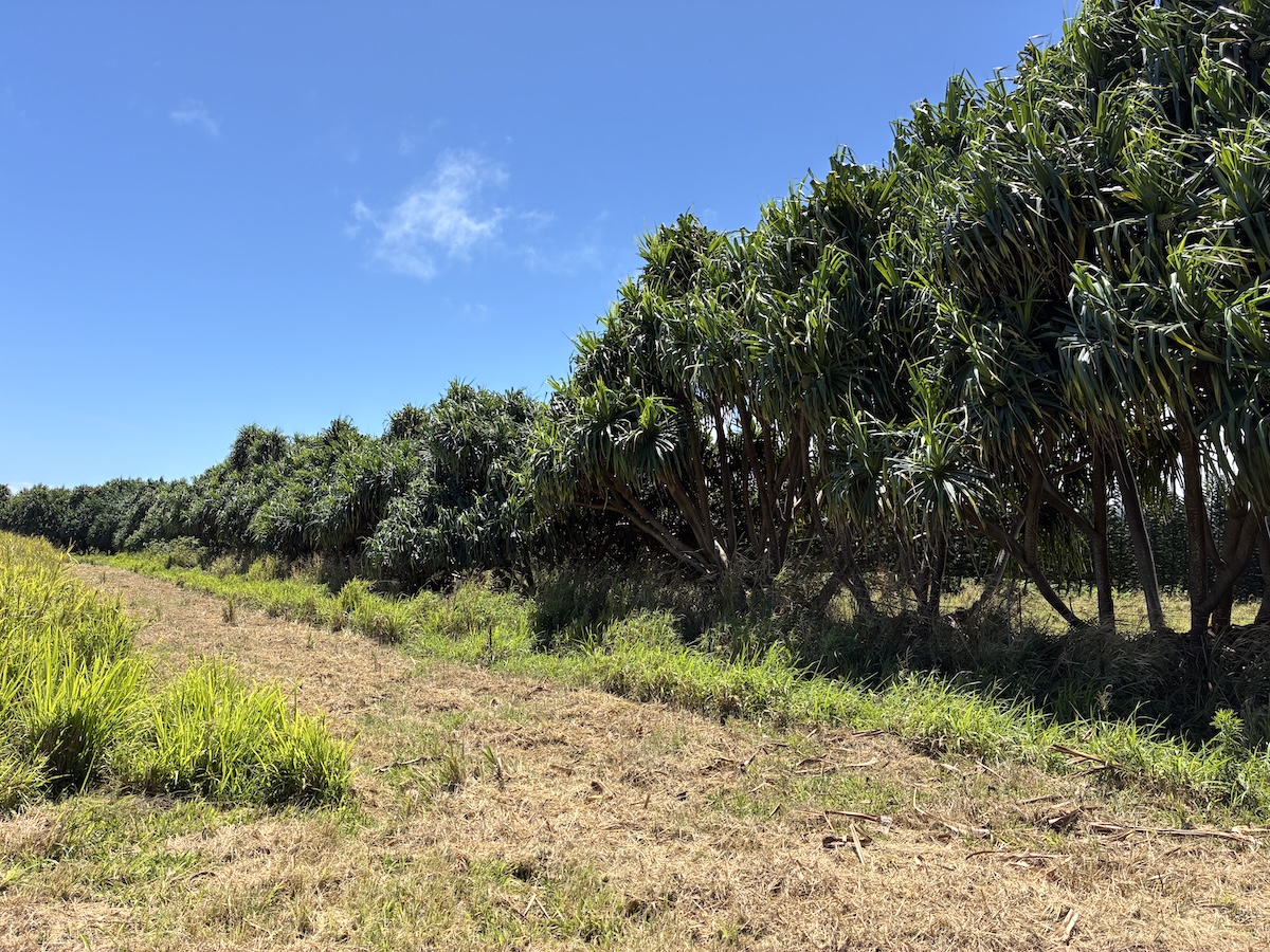 Gated entrance and fully fenced with fence line partially rimmed with mature Hala He'e and other native trees.