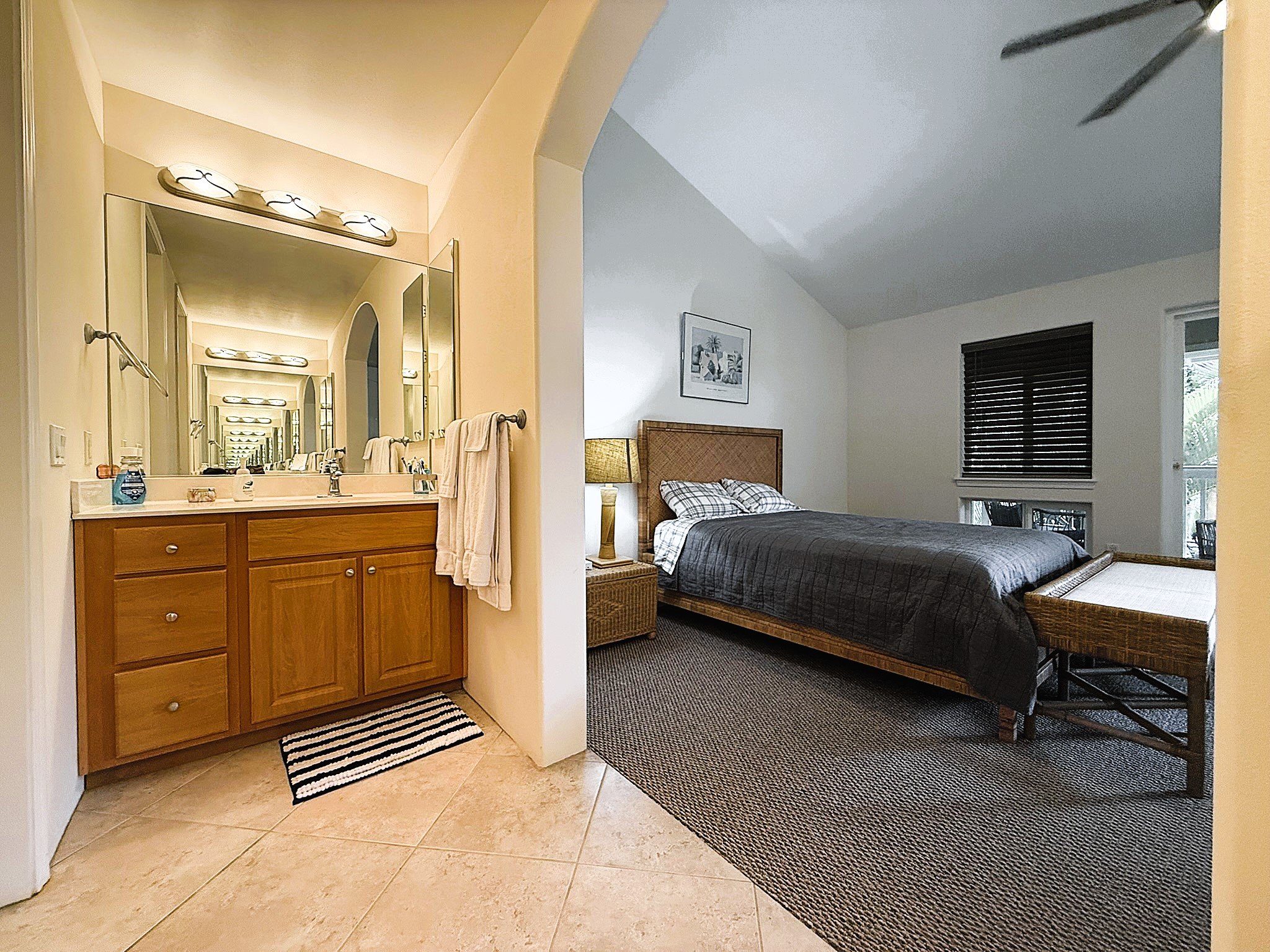 Upstairs you'll find a guest bedroom, full bath, and loft area—offering flexibility to suit your lifestyle. Additionally, the primary suite is a true retreat, complete with a private lanai, walk-in closet, dual vanities, and a tiled walk-in shower.