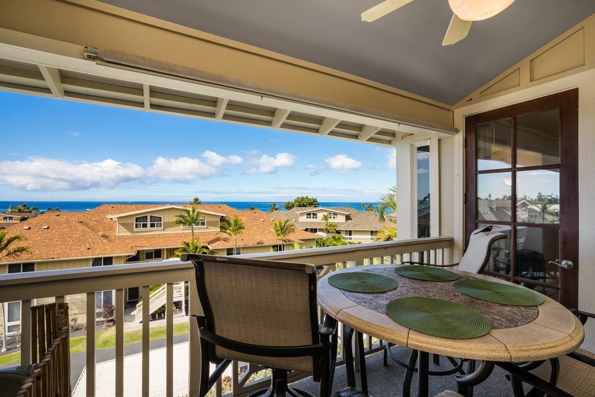 Enjoy vast ocean views and the chance to live next to the white sand beach where Tom Morey invented the boogie board. Welcome home to Alii Cove, one of Kona’s most desired condo communities that offers a gorgeous pool, hot tub and work-out facility just steps from the beach.This upstairs unit feels brand new. It is situated to make the most of the views and the mauka/makai breezes, minimizing the need to run the central A/C. A one-car garage and plentiful storage are two features difficult to find in condo living.Preparing island delicacies will be a pleasure in the kitchen that is marked by gorgeous granite counters. Plenty of wooden cabinets and a convenient pantry create abundant storage. A granite bar separates the kitchen from the living room. Vaulted ceilings create a tremendous feeling of space and this room connects to a lanai, revealing ocean views that stretch to Kailua Bay, where cruise ships visit from around the world. Miles of horizon are visible so Kona’s glorious sunsets will be enjoyed year-round.The master bedroom also opens to the lanai and giant windows invite the ocean breeze.Additional features include vaulted ceilings and two walk-in closets. The well-designed master bathroom has a tile shower with a built-in seat and long vanity with two sinks.The roomy guest bedroom lies near the entrance and the guest bathroom, and it receives the cool mauka breezes that drift down Hualalai in the evening.An upstairs loft is quite large and currently set up as an office and spare bedroom. And to top it all off the unit is being sold turn-key furnished for the sellers convenience!An additional plus is the 6 guest parking stalls adjacent to the G garage building, so convenient for guests!1 indoor cat or bird No vacation rentals less than 30-days