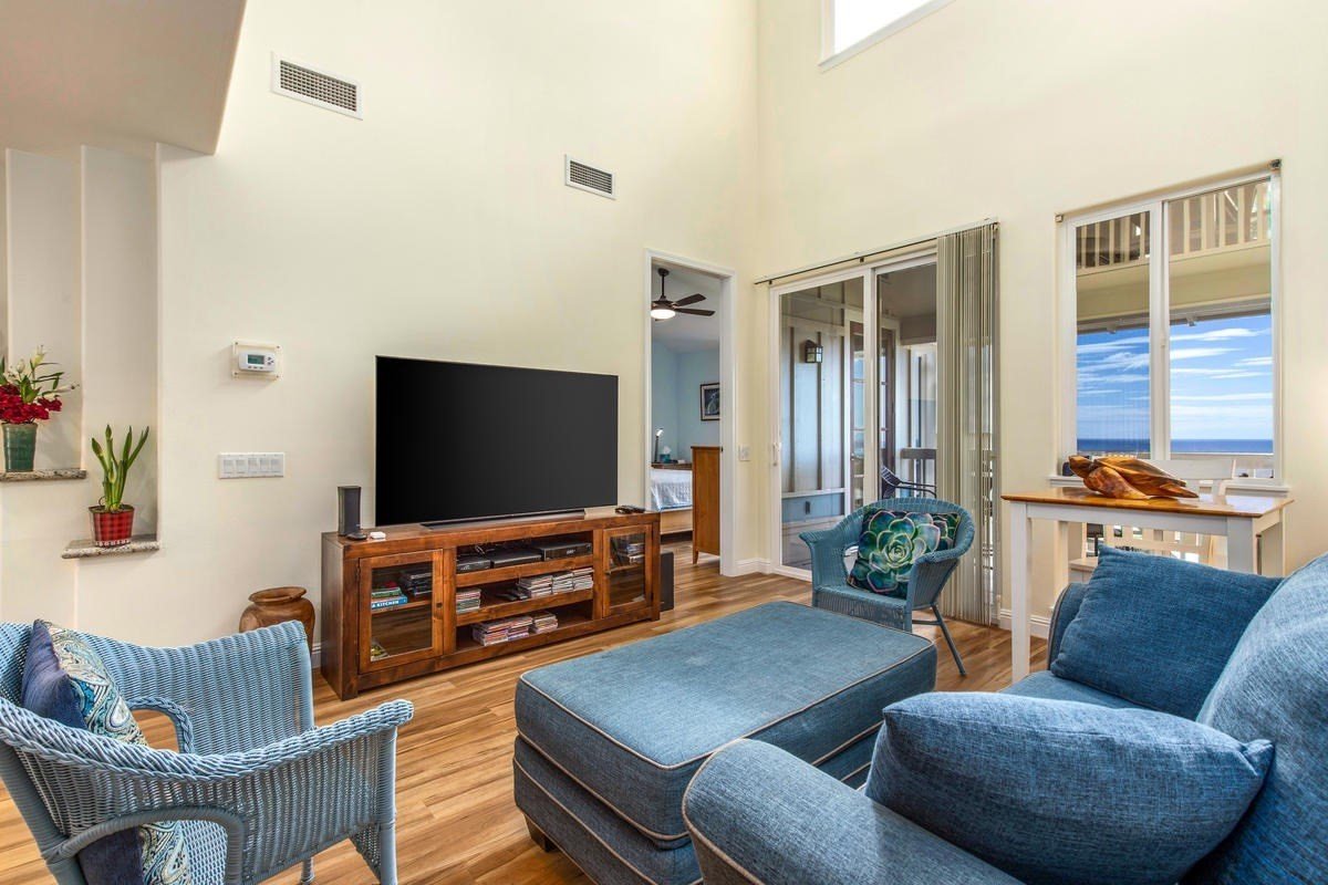 Remodeled 2 bedroom/2 bath plus loft at Alii Cove with expansive ocean and sunset views. Custom solid hardwood cabinets, gorgeous granite countertops and stainless steel appliances in the reconfigured kitchen. This popular floor plan offers extra space upstairs for additional living area or an office/study with the main living and bedrooms on one level. Custom paint, new flooring, tinted windows, California closets in the bedrooms and a new a/c installed in 2018 this unit is move in ready!Alii Cove is a gated community conveniently located within walking distance to downtown Kailua Kona, restaurants, shops, beaches and 20 minutes to the airport. Owners have access to the resort style pool, spa, children's pool with sandy bottom, BBQ area and work out facility. Association fees include rubbish, water, sewer, upkeep of exterior of buildings, maintenance of common areas and insurance for exterior of buildings.**Please note Alii Cove has made changes to its rules regarding approved flooring on the upstairs units. The vinyl plank flooring in the living area, dining area and bedrooms must be replaced with carpet upon the transfer of the unit to a new owner. Seller and association to pay costs of flooring change. **