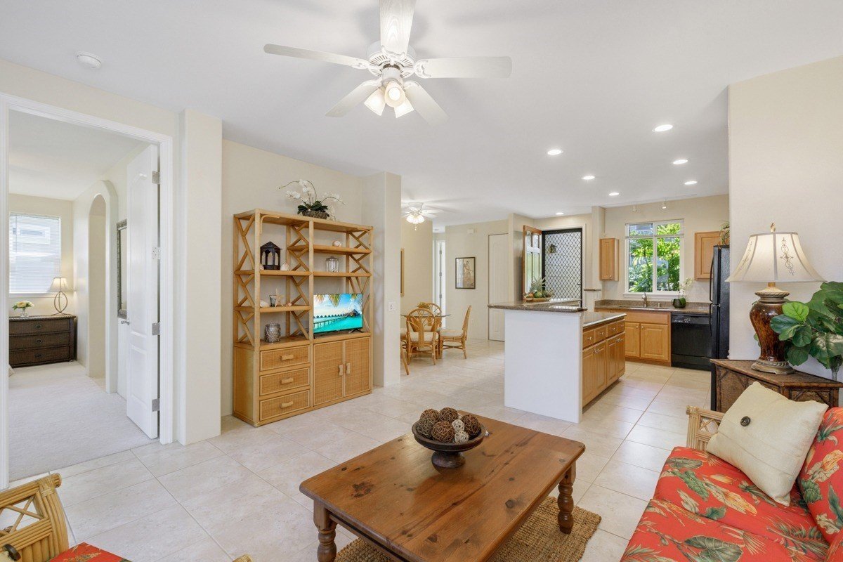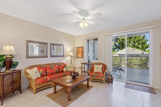 Step inside and be greeted by a light and bright interior that exudes a modern and refreshing ambiance. The spacious living area seamlessly flows into the large outdoor living space with Trex-style decking - perfect for soaking up the Hawaiian sunshine and entertaining. With an immaculate presentation, this condo feels like new, offering a turnkey experience with stylish island furnishings included.