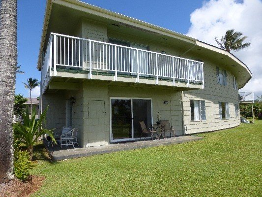 Drive to the far end of this low key Princeville community and open your door to enter your own tropical dream. If your idea of paradise is a spacious, two bedroom, two bath condo with ocean views, delicious trades, and a walk-out lanai, you have found paradise. From watching the whales frolic in the sea, to the waterfalls and rainbows over the mountains, to the spectacular ever-changing sunsets—this is it. This corner unit has extra side windows to enhance the views and lighting, a wraparound lanai fronting a large lawn, a beautiful & functional kitchen, inside laundry, his home is move-in ready! Extra rental income makes this primary, second, or vacation rental home ideal. The community features an exclusive pool area; the grounds and buildings are well maintained. The sounds of a tropical Hawaiian summer are beckoning...