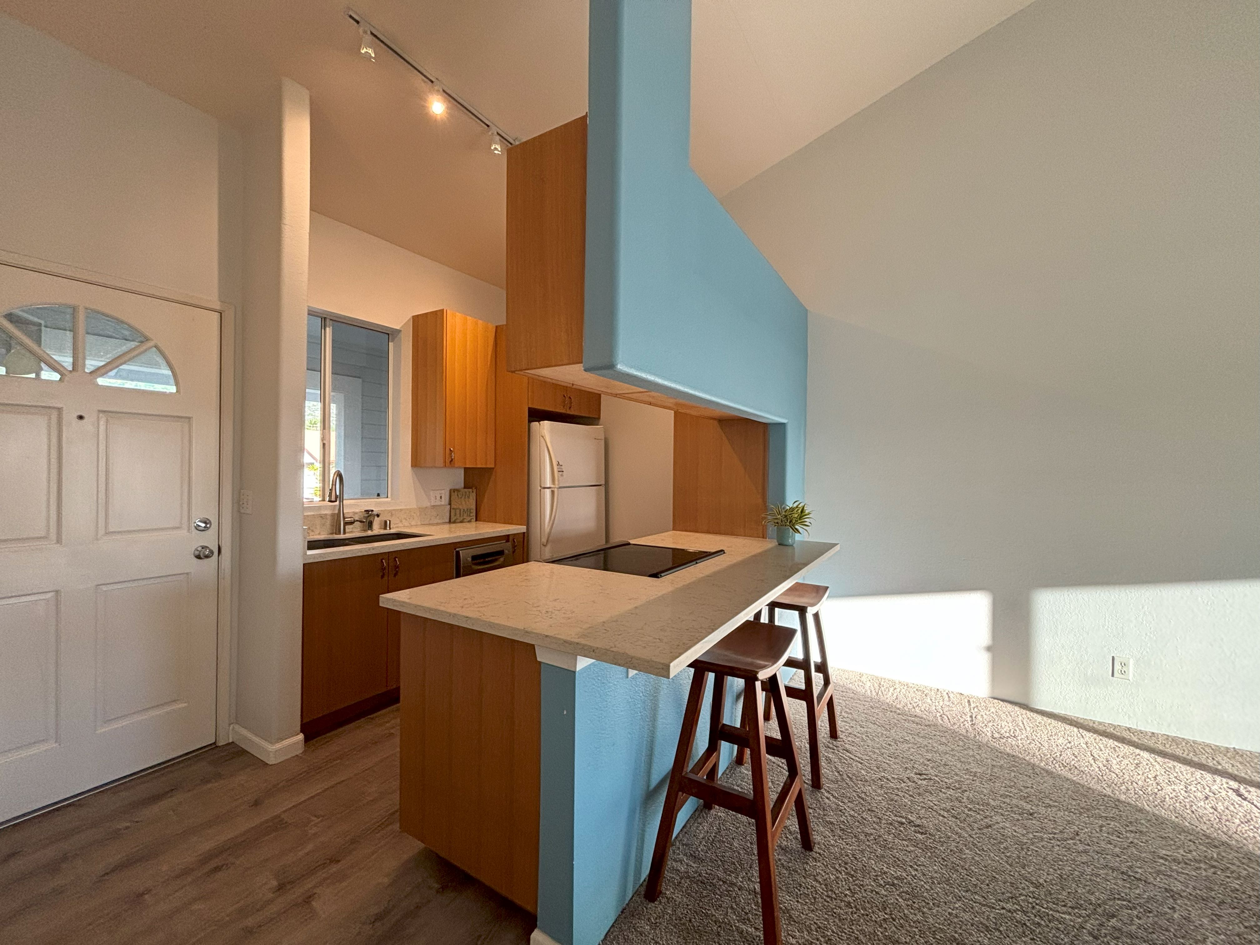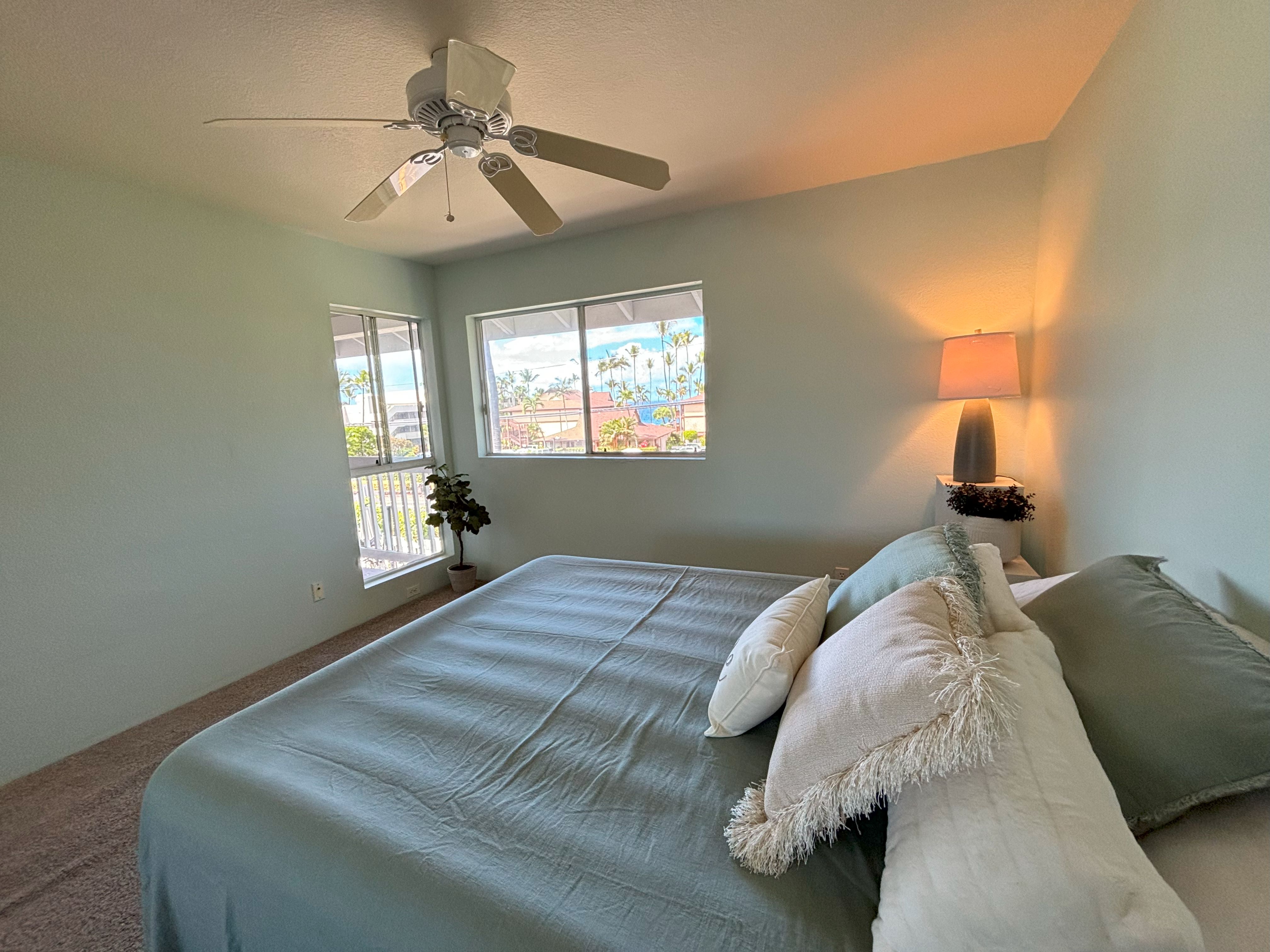 Welcome to Alii Lani A202, A beautifully upgraded condo with Ocean view overlooking Alii Dr from your back lanai and views of Hualalai Mountain from your kitchen!Kitchen and Both Bathrooms Remodeled in 2021: Cabinets Replaced Tasteful Quartz countertops Vinyl flooring in Kitchen and both bathrooms Both bathrooms remodeled with tile to the ceiling and glass shower doors Interior Re-painted PaintedSpacious vaulted ceiling! 2 Parking Stalls side by side! Stacked washer / dryer Mailboxes on the path to your door.Relax at the onsite luxury pool with pavilion and spa!