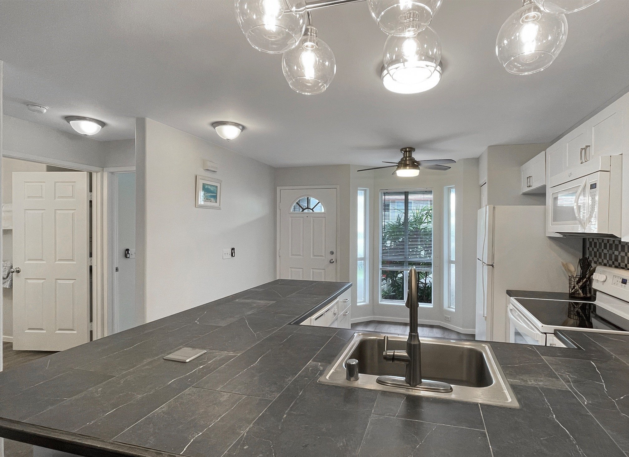 Recently remodeled in 2021, this ground floor 2-bedroom, 2-bathroom unit is located in the back row of Ali'i Lani, far from the street and adjacent to undeveloped land. Enjoy sunshine in the morning or shade in the late afternoon on the large rear lanai.