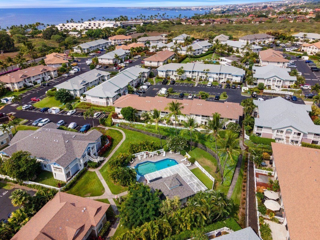 Alii Lani includes 2 Resort-Style Pool Areas with Pavilions, Hot Tubs, & BBQ Facilities. This complex has one of the lowest maintenance fees in the Kailua-Kona area, and includes water, sewer, trash, landscaping, on-site property manager, and common area expenses and insurance. The complex is centrally located just minutes to the heart of Kailua-Kona with world class Restaurants, Shopping, Ocean Activities & Farmers Markets. Also within minutes are beaches and surf breaks like Magic Sands, Banyans, or Kahalu'u. Mailboxes on premises. Alii Lani allows one indoor cat or bird. 30 day Minimum rentals.