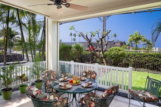 Alii Park Place is a gated low-density custom condo community conveniently located to downtown Kailua Kona and ocean recreation areas.The complex offers a central promenade with beautifully manicured tropical grounds and majestic palm trees. Enjoy the Hawaiian lifestyle, take a cool dip in the spectacular lagoon-style pool, or unwind in the bubbly spa. Prefer to read and relax - the open-air library and the shaded sitting area are the perfect place for it. You can even prepare your dinner on the shared barbeque while reading a book or taking a dip. The garden level unit #A101 is unique. It is the only unit in the project that offers an extra 140 SF of bonus area in the one car garage, as well as a second large lanai. The very close proximity of the condo to the garage and additional assigned parking stall provide for convenient access.The master and guest bedrooms each open onto a lanai for outdoor enjoyment. The east/west orientation of this condo welcomes cooling tropical breezes.Special features: Soft-close DeWils cherry cabinets Stainless steel appliances Granite countertops Travertine flooring Dual vanity in master bath Full-size newer stackable washer and dryer New A/C unit installed in 2016 Dual glazed windows Furnishings are includedMonthly maintenance fee includes: resident manager, gated entry, pool, spa, water, trash collection, sewer, common area landscaping, master policy insurance on the project, and exterior maintenance of buildings. Pets ARE allowed: one dog or cat, 25lb limit, upon approval from the board. A 30 consecutive days minimum rental rule applies.