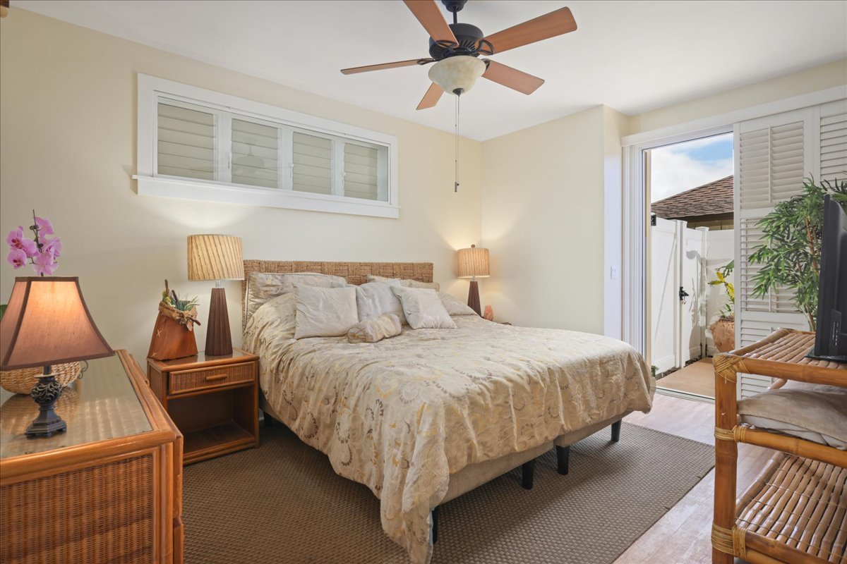 Special features include a prized SECOND PARKING space in addition to the included single space, a single-car GARAGE. (Three total parking spaces). Above the garage is an attic, a unique feature, the only garage attic at in the complex. A peek-a-boo ocean view from the front lanai, and gate access from the garage to the large backyard lanai. This modern and spacious home has all the amenities. Along with a community pool and jacuzzi, BBQ grill and dining area, you have the perfect home in Paradise.