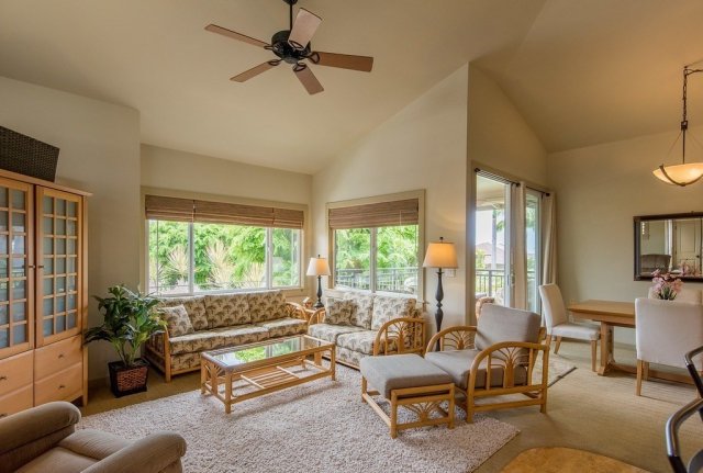 Alii Park Place is a gated community on the inland side of Alii Dr, the front residences sitting approx. 350 yards from the coastline. These four-plex buildings have an atrium and the staircase in the middle, so there are no shared walls.