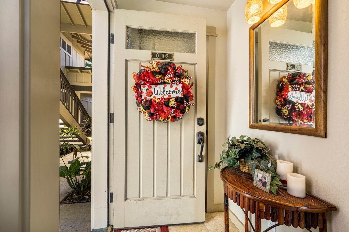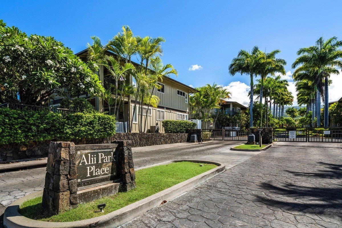 Alii Park Place is a gated community on the inland side of Alii Dr, the front residences sitting approx. 350 yards from the coastline. These four-plex buildings have an atrium and the staircase in the middle, so there are no shared walls.
