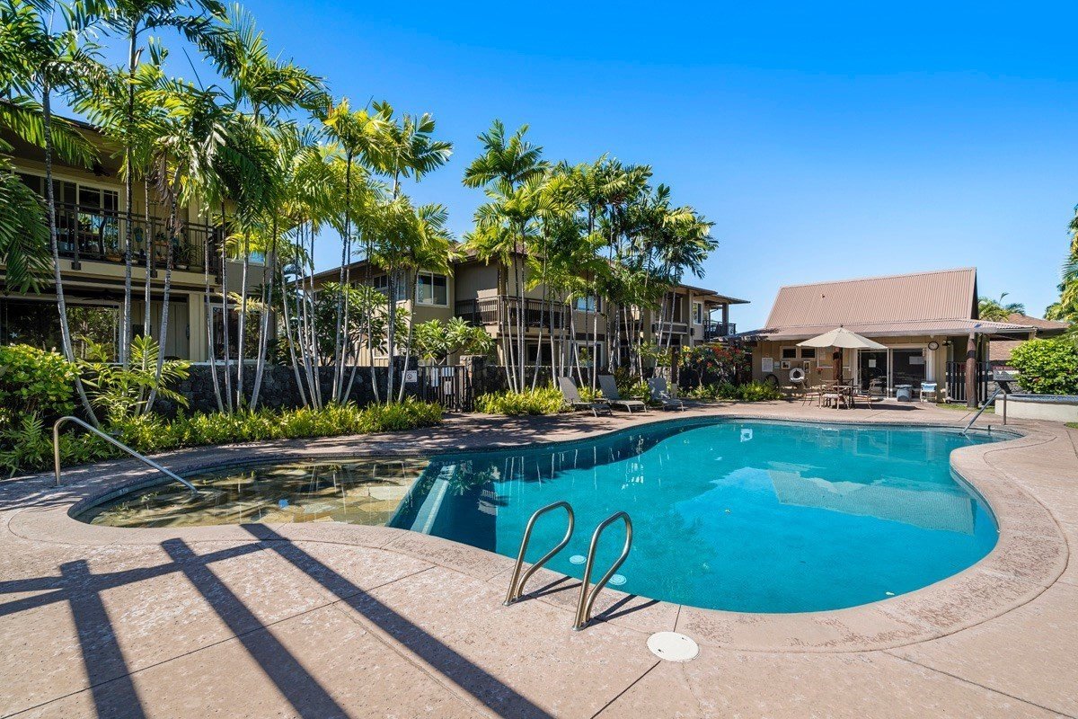 This low density complex was built in 2004 and is one of the newest builds on Ali'i drive. Tropical landscaping throughout this secluded private complex. There is a large pavilion area complete with a barbecue, pool, and hot tub. This unit is situated at the back of the complex with views of the mountain side and the beautiful landscaping. ~BRAND NEW REFRIGERATOR ~NEWER WASHER AND DRYER ~GRAINTE AND TAVERTINE COUNTERS ~CENTRAL AC ~ASSIGNED PARKING STALL AND GARAGE