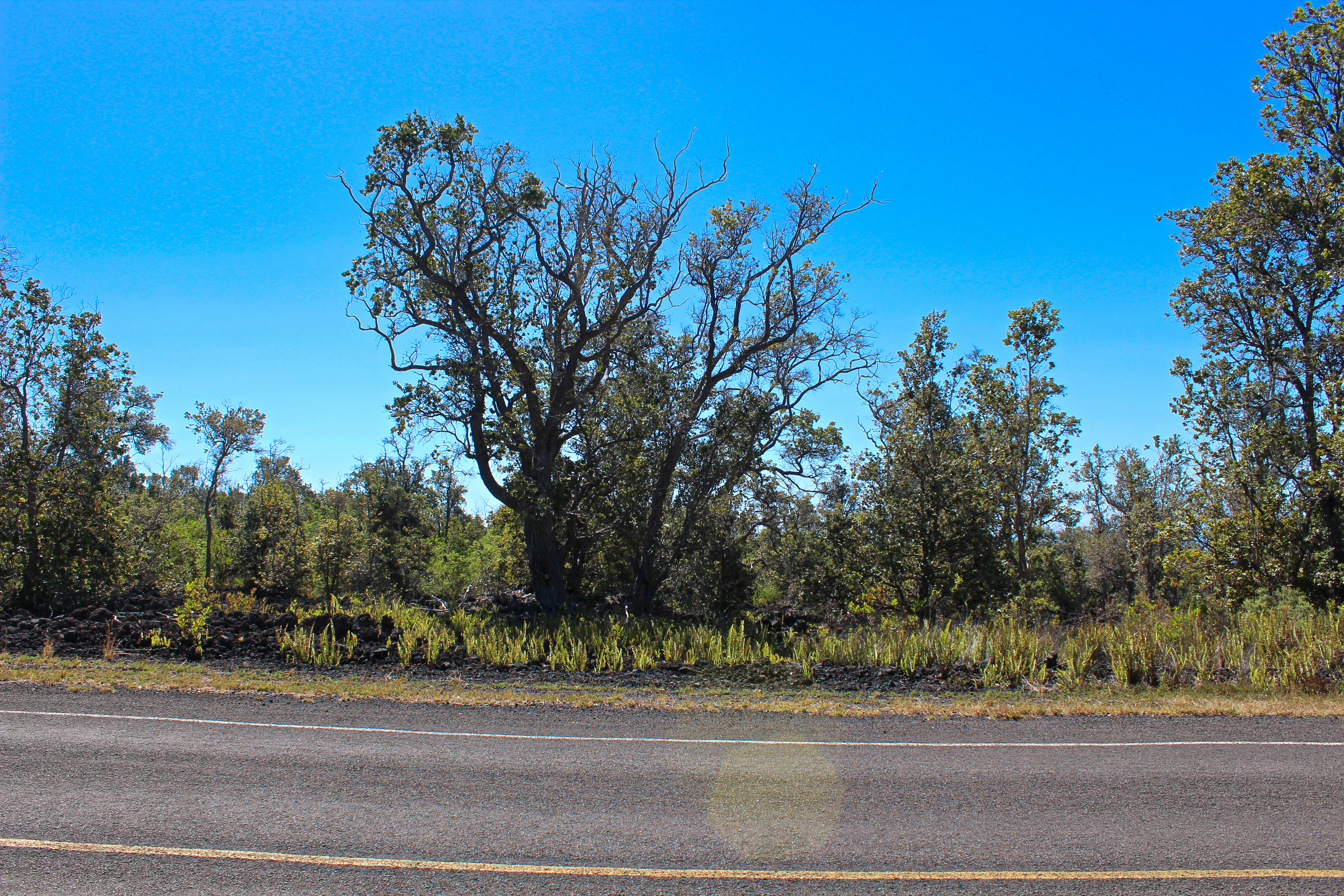 This property is vacant land with 'a'a lava, ferns, other native plants & medium to large 'ōhi'a trees. Plenty of trees with big open spaces makes this particular lot easy to develop. There are views of the ocean through the trees during the day, from this beautiful, park-like setting. Amazing star gazing at night, dark enough to see the Milky Way! Warm days and cool nights. Overhead power is available via SSPP, or go off-grid with solar!
