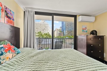 Aloha Surf Hotel - a condo hotel - offers one of the more affordable entries into Hawaii’s tourist rental market, managed by Aqua Resorts with concierge service. Located centrally in Waikiki, these units - mostly studios - are popular for investors seeking income potential. The property has a restaurant on-site.