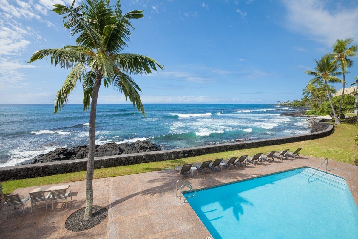 Unobstructed panoramic ocean views from this absolutely stunning 2 bed, 2 bath direct oceanfront condo! So close, it feels as though you can touch the water! Watch whales, dolphins, turtles and enjoy the most spectacular sunsets. This stunning condo is beautifully refurbished top to bottom and comes turnkey with gorgeous, high end resort-style furnishings. This spectacular unit has phenomenal rental history and reviews; and comes with a coveted vacation rental (STVR) permit to start your own adventure in Hawaii. You can begin vacation renting immediately. Banyan Tree is a gem, located right on the ocean along the Ali'i Dr. beach corridor between Keahou and downtown Kona. It is one of the closest to the blue Pacific Ocean, directly in front of the famous Banyans surf break which provides endless surfing entertainment. The first floor covered parking garage, secure elevator, gorgeous ocean front pool, spa and BBQ area make it difficult to ever leave. Duplicating this unit, location and setting would be nearly impossible today. Having only 20 units makes this lower density boutique complex a truly special place to live or vacation. Click the "film" icon to access the virtual walk-through tour and floor plan. Come and play - rent while you're away! To view inventory list click attachment.