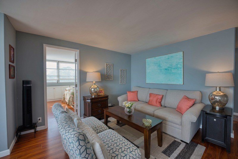 This gorgeous 2 bedroom, 2 bath condo has a washer & dryer in the unit as well as a dishwasher. Ocean breezes keep it comfortable & there are also new window ACs in the bedrooms. The bathrooms have been remodeled master & has a walk in shower & bidet. Smooth ceiling, no popcorn!
