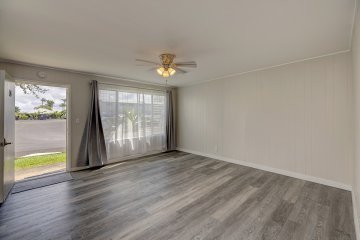 The 100 two-bedroom condos range between 695 to 764 square feet, with a select few also boasting a separate lanai area ideal for additional storage. There is no air conditioning or ensuite washers and dryers throughout the complex, but a community laundry facility is located on the ground floor.