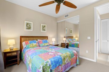 The two and three bedroom condos’ interiors measure 1,103 to 1,830 Sq Ft over one and two-story layouts. Exterior space is added by one or two lanais. Every three bedroom is a two-story townhome, with a full second floor that holds 2 bedrooms & bathrooms. Two bedrooms are a mix of single-level and those with a loft area consisting of one room. All residences have central air conditioning and a detached one-car garage for parking. There are a few units that have ocean views from them.
