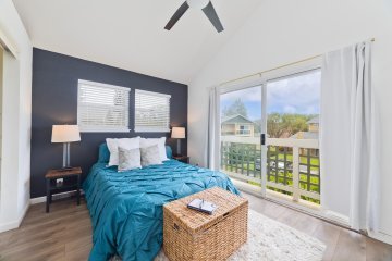 The two bedroom condos’ interiors measure from 922 to 1,297 Sq Ft with one or two lanais exterior.Additionally, off of each bedroom is a balcony, with enough room to stand outside, but not sit. The floor plans are a mix of single-level and townhomes that have a second story with both bedrooms and two bathrooms there.
