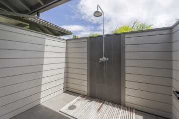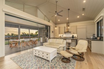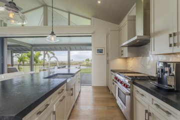 These two to six bedroom townhomes have interiors of 2,123 to 3,478 Sq Ft with at least two lanais adding exterior space. For some, one of the bedrooms is in a separate ohana unit that is above their garage. A private pool and hot tub is on the back lanai of every residence here. In addition, you have a detached two-car garage and your home has central air conditioning inside. Despite being inland, many of these townhomes have ocean views.