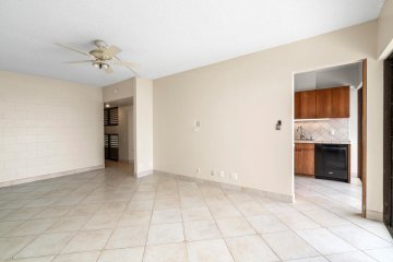 The two bedroom condos have interiors are either 1,161 or 1,266 Sq Ft with one exterior lanai of 226 or 317 Sq Ft. Each unit has one assigned, covered parking space in the garage that has a rooftop tennis court. Ceiling fans are in all living areas and bedrooms, with some owners also having added a split a/c system. The outside walls of the units are partly or even fully louvered to let in breezes.