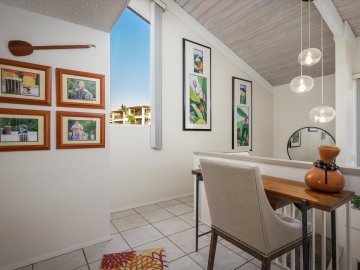 The one to three bedroom condos have interiors measuring from 1,101 to 1,953 Sq Ft with one or two lanais exterior. Sixty of the units are one bedrooms and forty six of them are two bedroom layouts. The two bedrooms vary between single-level floor plans and those that have the second bedroom and a bathroom in an upper level similar to an enclosed loft. There are only six three bedroom homes here, all of them two-story layouts with two of the bedrooms upstairs and a lanai on each floor.