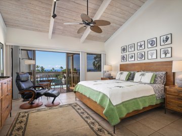 Keauhou Beach Park, ¾ mile south of your home. Its protected location in a cove keeps the big waves out, so you can get in for some comfortable swimming here. This also makes it easier to put in your boat, kayak or paddle board as well or you can go over to the northern side of the cove where the snorkeling is always good.