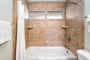 The Kona Shores is an almost-oceanfront property, one neighboring property between it and the shoreline. Shores condos nearest to the Pacific are only about 100 yards from the swells. The unusual shape of its lot includes a ‘handle’ that extends to the ocean and holds the complex’s recreation area, including a pool and sundeck right on the water.