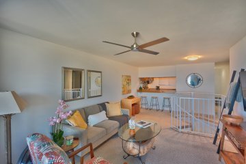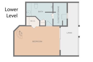- 3BR with a large, enclosed ‘loft’ that is on the floor below the main condo level. This lower loft is the third bedroom and has a bathroom, closet space and a lanai.