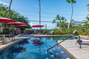 From your own elevated pool and sundeck at the Royal Kahili you can look out to the Pacific and take it all in without ever leaving your complex.
