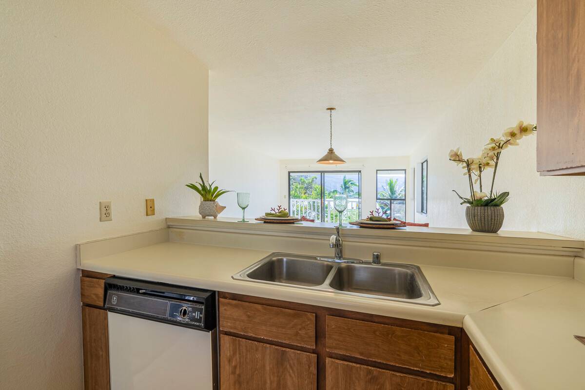Enjoy sweeping ocean and South Kona coastline views from this top floor corner unit ! Two bedroom - two bath condominium home is in clean and 'original condition.' With this location and view, there is lots of potential to create an updated, fabulous home. Thoughtful details in the floor plan include: - Upon entry, there is a wall of closets adjacent to the kitchen for storage needs. - The great room has large windows for natural light and ventilation, and to maximize the views. - The primary bedroom is en suite with a large window framing the ocean view. - Each bedroom has 2 roomy closets and its own bath with a tub/shower combo. - Newer full size Whirlpool Duet stacked front loading washer & dryer located in the hall between the bedrooms. Very private location with unobstructed view on the top floor and at the makai end of Building C. Enjoy the cool 1500' elevation and a 'country setting' with the convenience of condo living. The assigned parking stall for C-303 is located immediately adjacent to the C building. Visitor parking stalls and a handy new cluster mailbox (under construction) are just down the stairs from the unit. Low monthly maintenance fees of $ 487.00 include water, trash removal, wastewater and common area maintenance and insurance. Captain Cook Ocean View is a small complex of just 25 units, located across the highway from Kealakekua Ranch Center with a grocery and hardware store, plus a variety of eateries and services. Also a short drive to the Kona Community Hospital and the weekly Pure Kona Green Market, and just 20 minutes to Kailua-Kona.